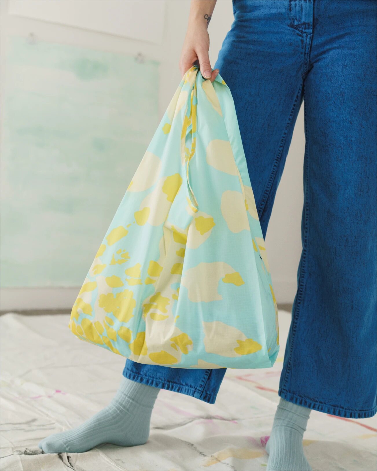 Spot Baggu, натуральная нейлоновая складная экологически чистая сумка через плечо с принтом тай-дай Water Tie Dye Aqua, среднего размера