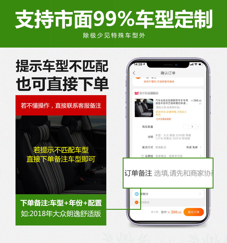 | Меры предосторожности |   пожалуйста, укажите: конкретные модельные бренды, год (без качества в стиле), стиль и информация о сиденьях и т. Д.;   цена этого продукта составляет 5 -пример, цена 7 -моделей 7&Раз; 7/5 или, пожалуйста, свяжитесь с обслуживанием клиентов; &Набор сидений NBSP; поддерживает домашние и многие модели бренда совместного предприятия. Модели, приобретенные за рубежом, могут отличаться от домашних моделей. Не берите их; &Nbsp; Если автокресло изменилось (например, смена сиденья или модифицированное кожу), или год года может привести к непоследовательным размеру, пожалуйста, объясните заранее; |