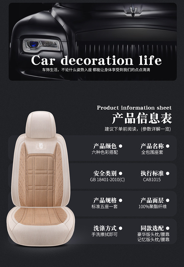 紫风铃 Автомобильная подушка Four Seasons General New Inclusive Liney Cloate Case 21 Полная осадная крышка сиденья F-02