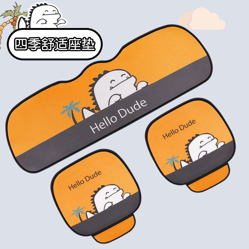 Мультяшное универсальное сиденье на четыре сезона, нескользящое цельное кресло для автомобиля, летний охлаждающий комплект, популярно в интернете, 3 предмета
