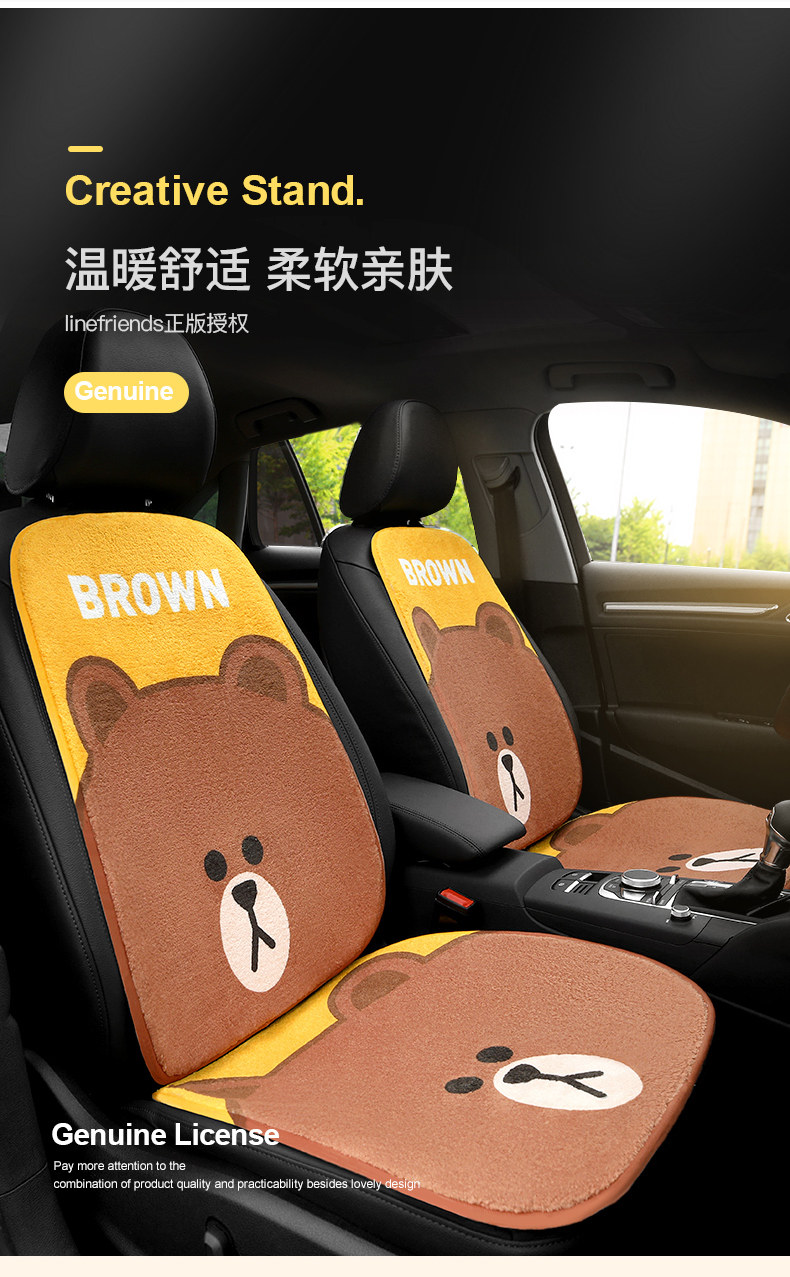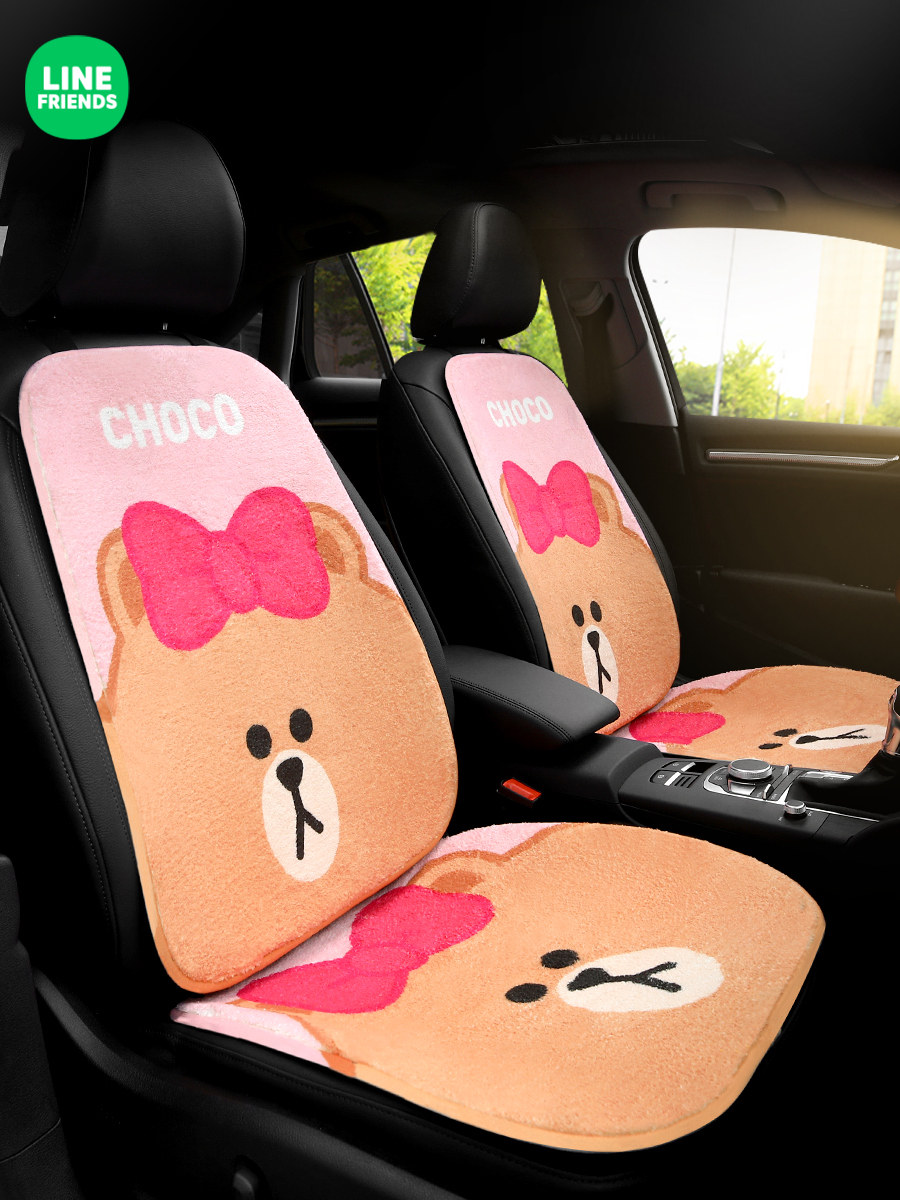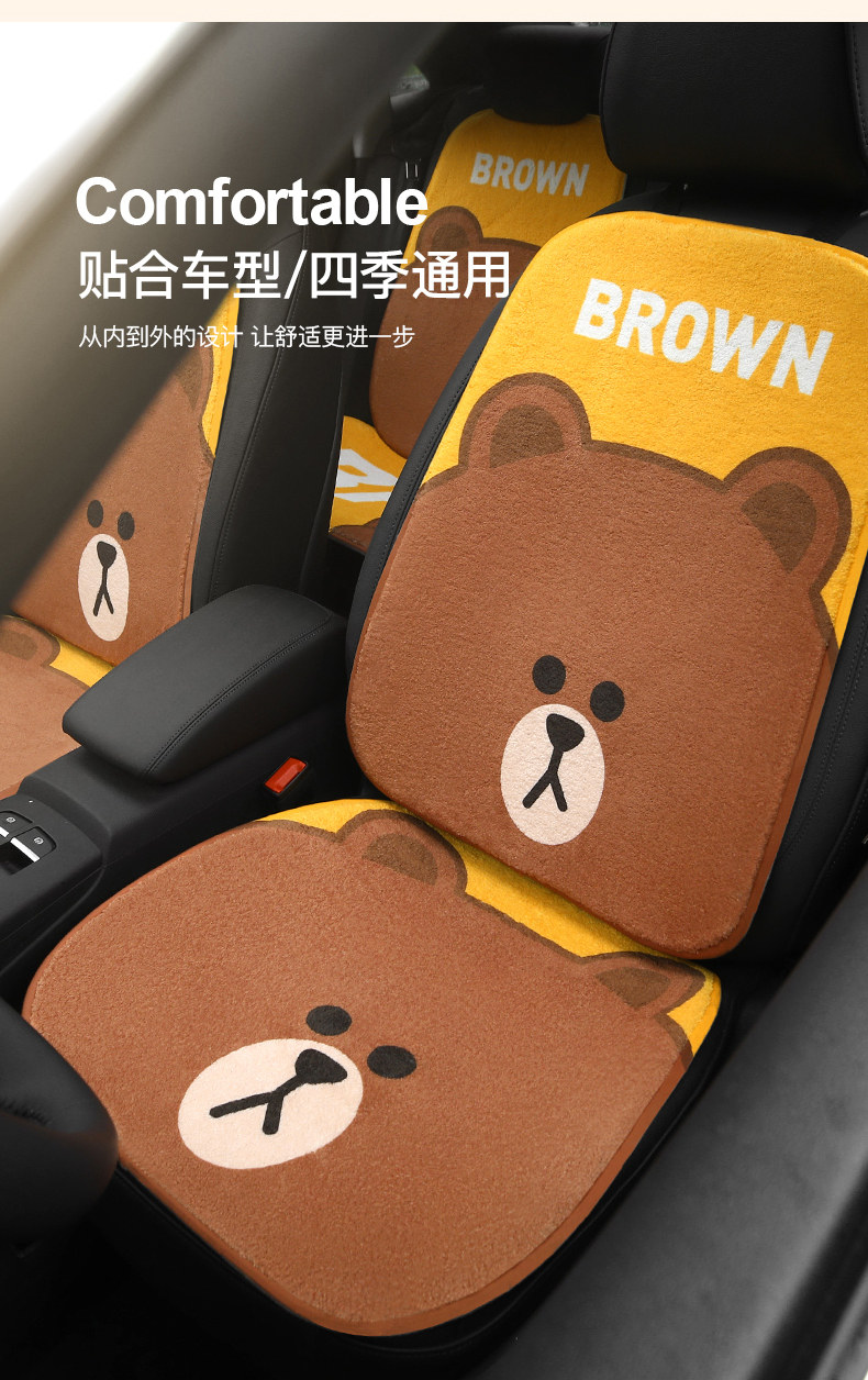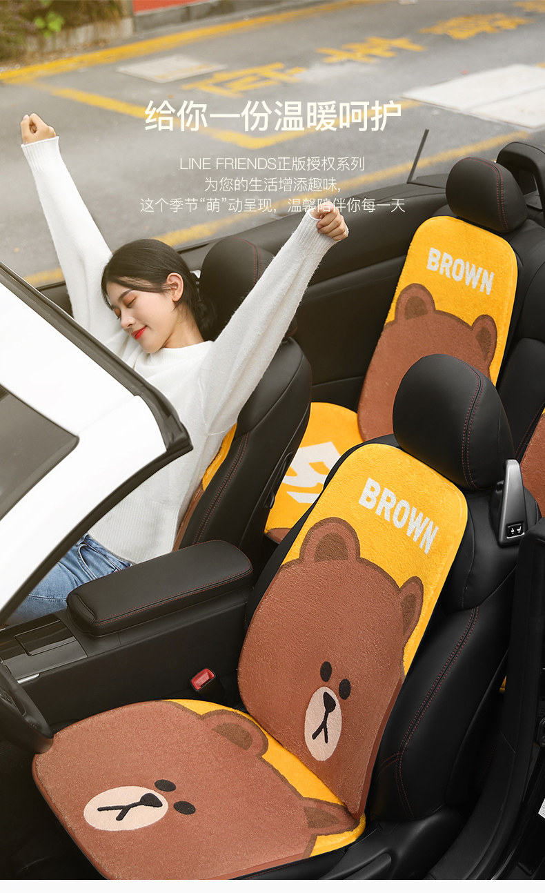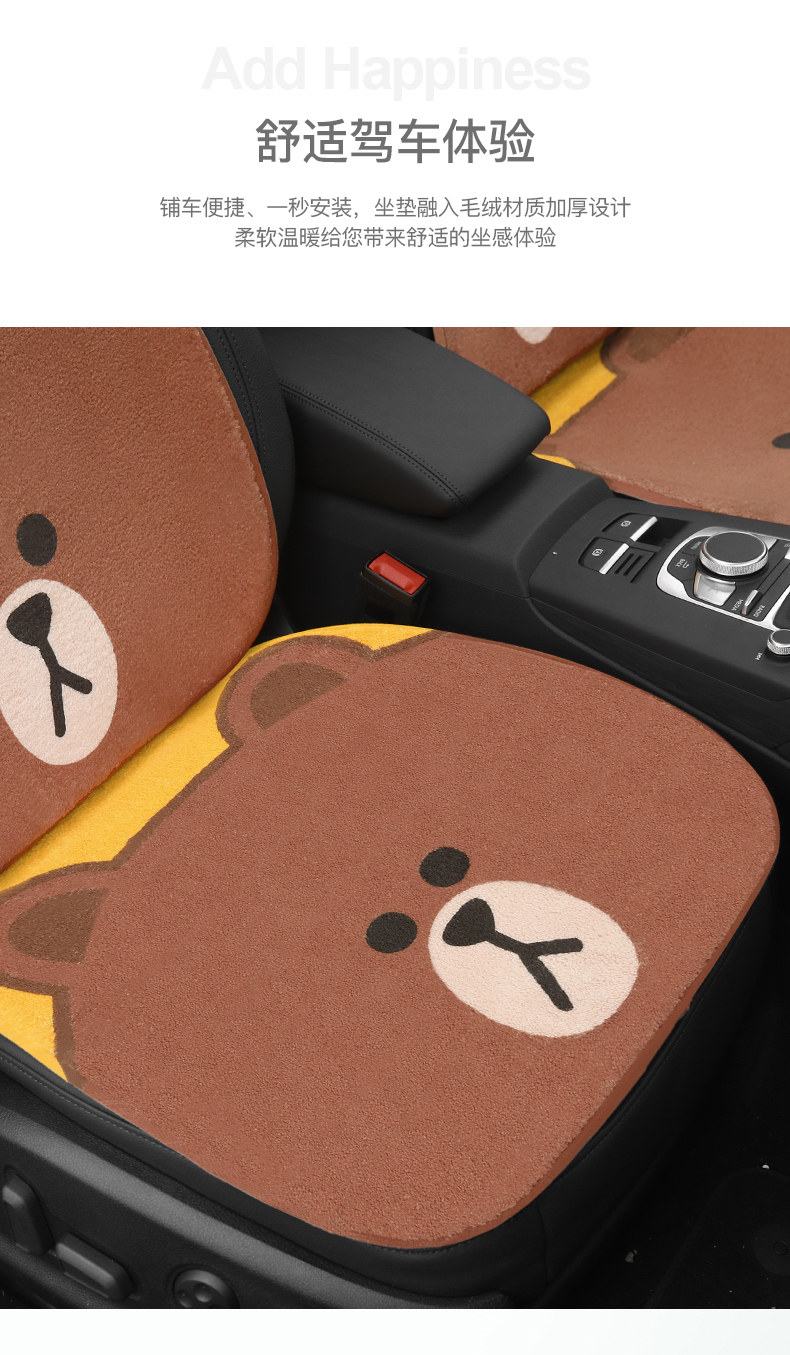 Зимнее плюшевое мультяшное сиденье, цельный удерживающий тепло нескользящий комплект для автомобиля, 3 предмета