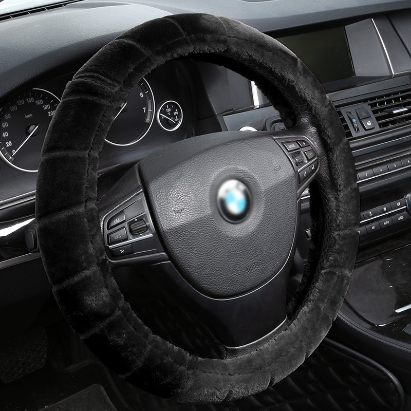 - D -Тип Круглый пушистый плюшевый рулевой крышку [черный]