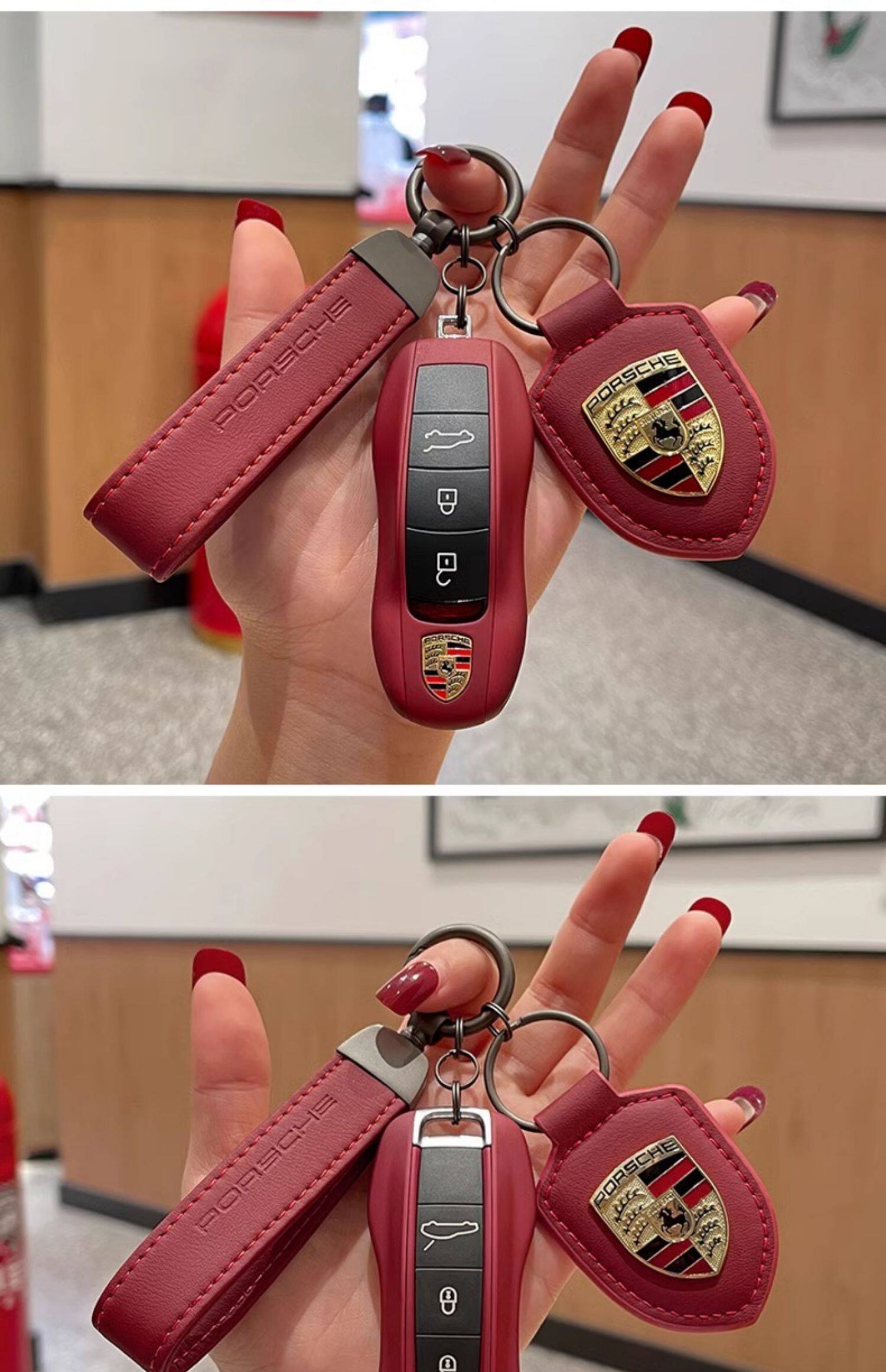 Подходит для Porsche Key Shell Bordeaux красная подлинная кожаная кожа кайенна макан Paramela Taycan Cay Cay Key