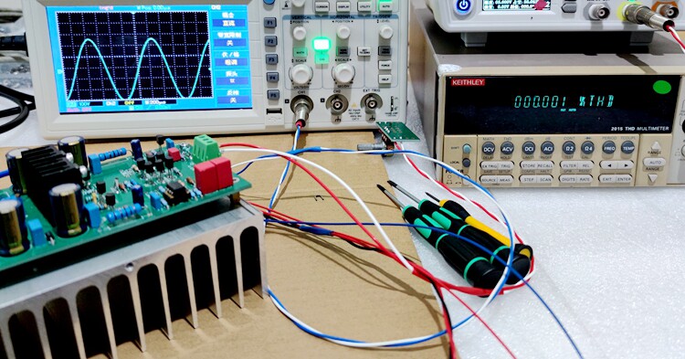 Каждая готовая плата будет выполнять тесты формы волны, тесты на искажение THD, тесты на шум и аудиопроводники при полной мощности