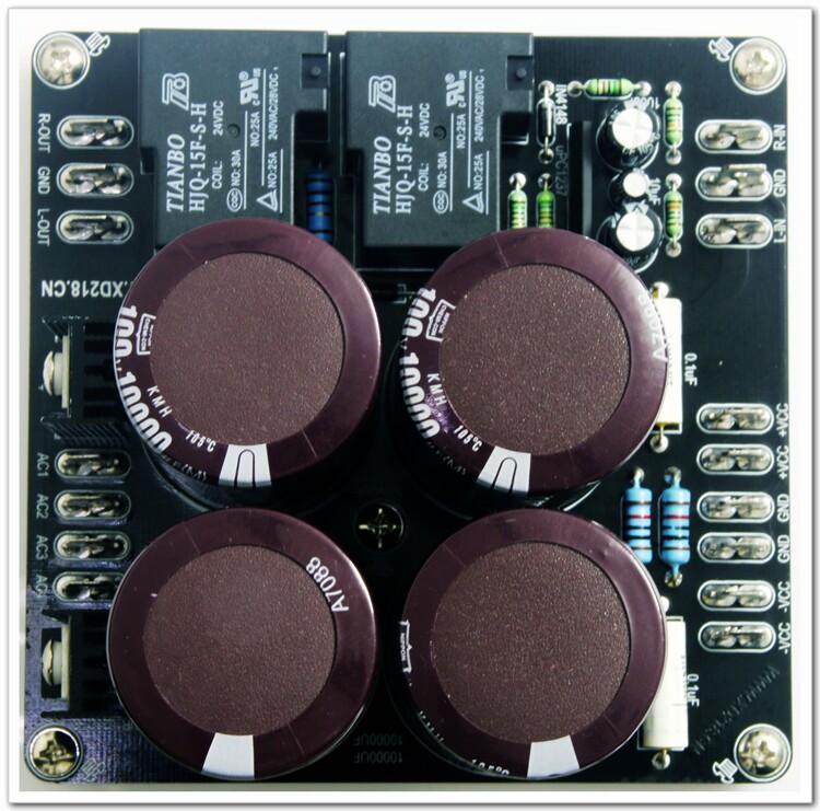 ● Пищевая плата использует 2,0 -миллиметровую стеклянную пластину, 2 унции толщины фольги, двойной панели, мощеной медь, а размер платы составляет 111,5&Время; 110 мм, 4 1000 UF/100 В японские робин -конденсаторы японских или черных бриллиантов, два 104 полипропиленовых конденсатора США, высокий скорость MUR1620, 20A Большой реле для выпрямителя моста