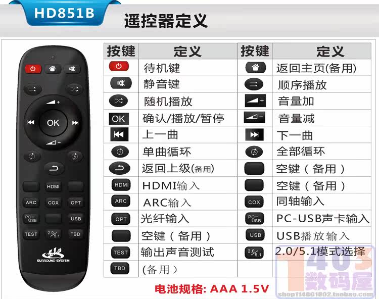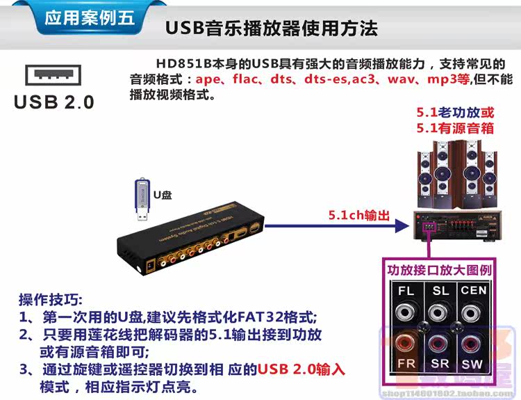 DTS/AC3 Формат 5.1 Аудио декодирование HDMI Bluetooth Multi -функция U Диск воспроизводится Audio Soft и Hard Decoder