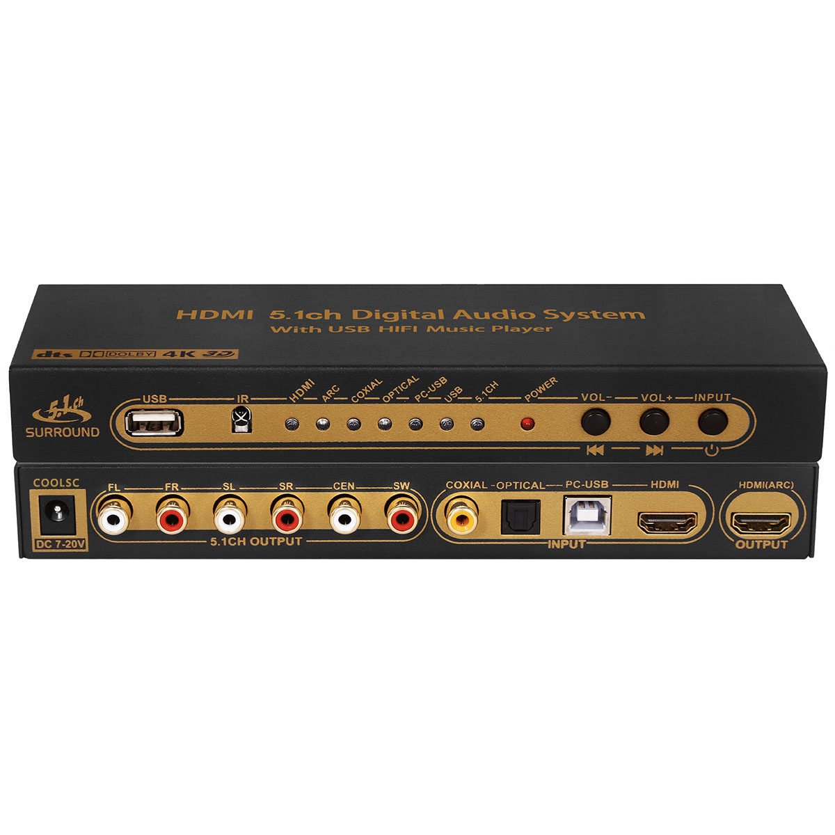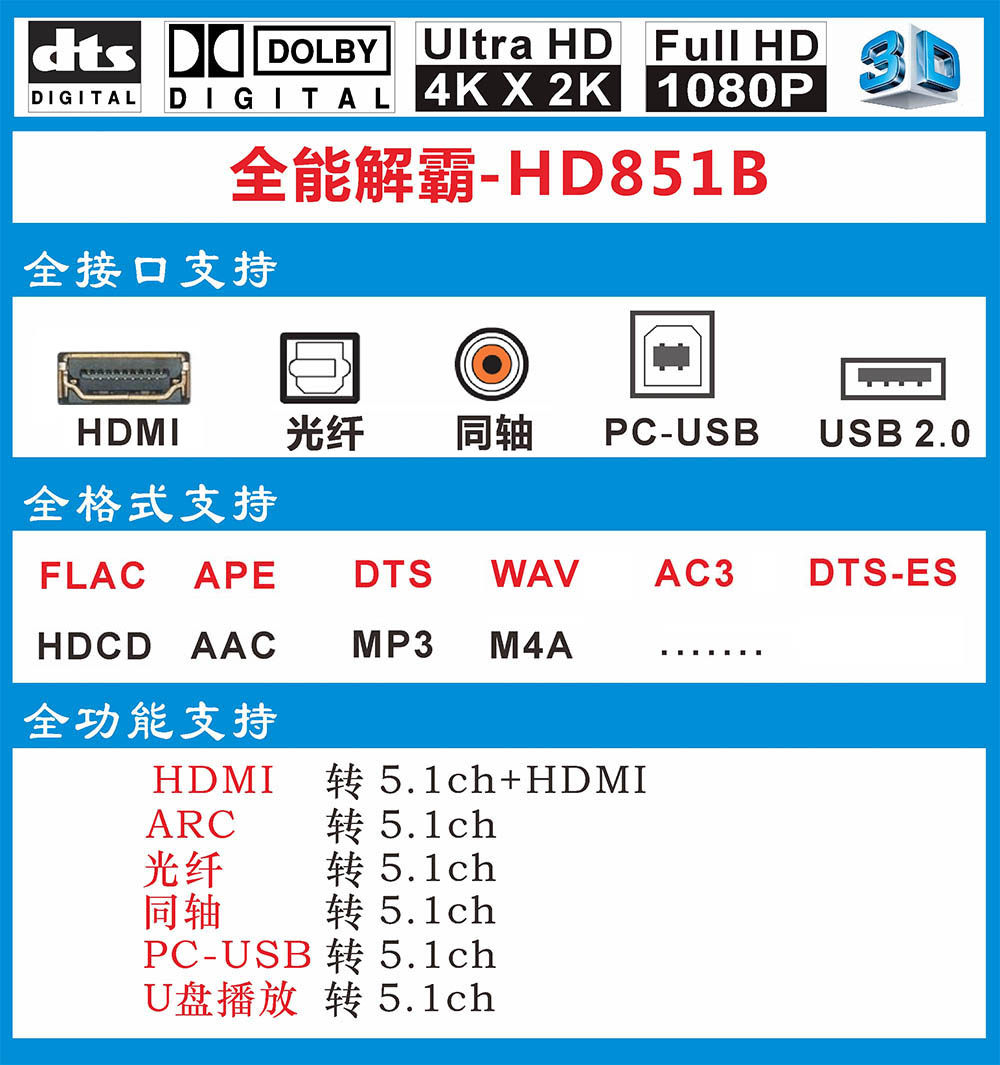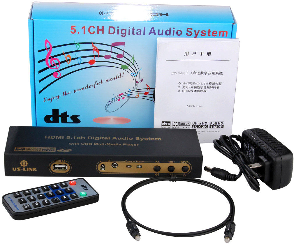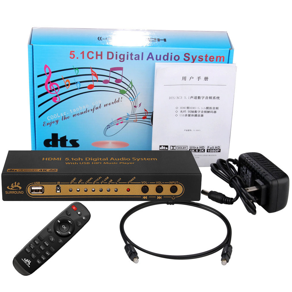 5.1 Dolby DTS Декодер Arc Theatre отделен от HDMI Audio Optical Fiber Coaxial Axis USB Sound Card U Disk Music