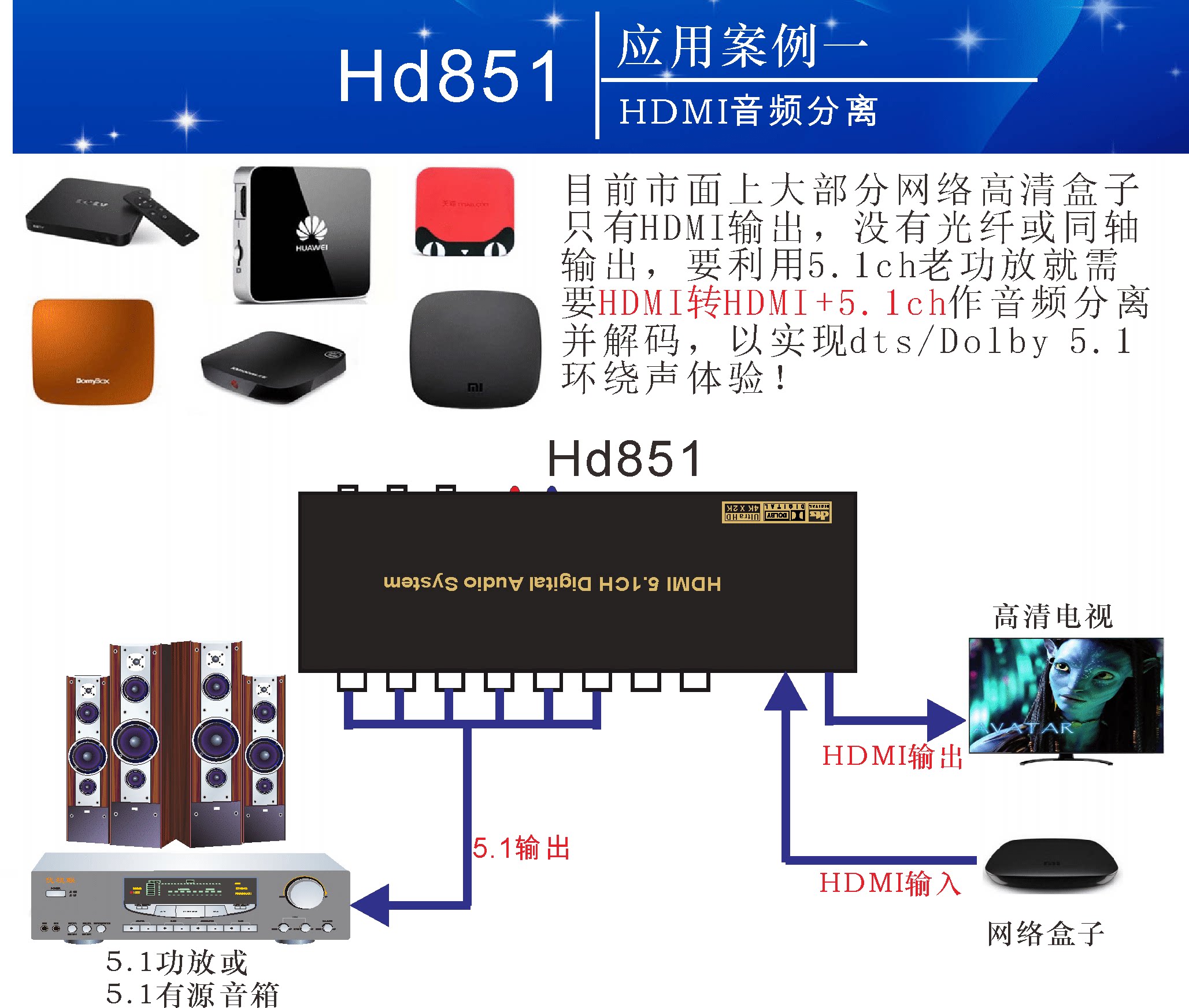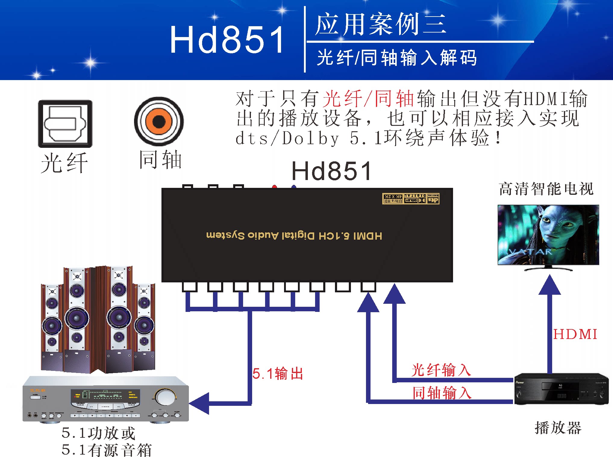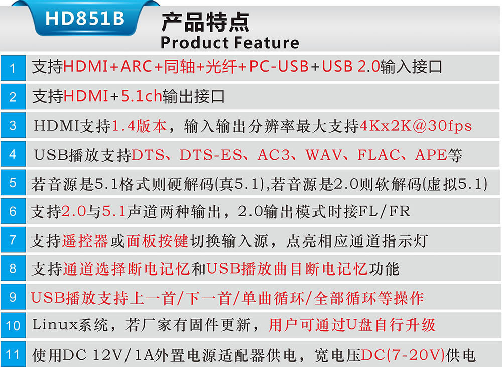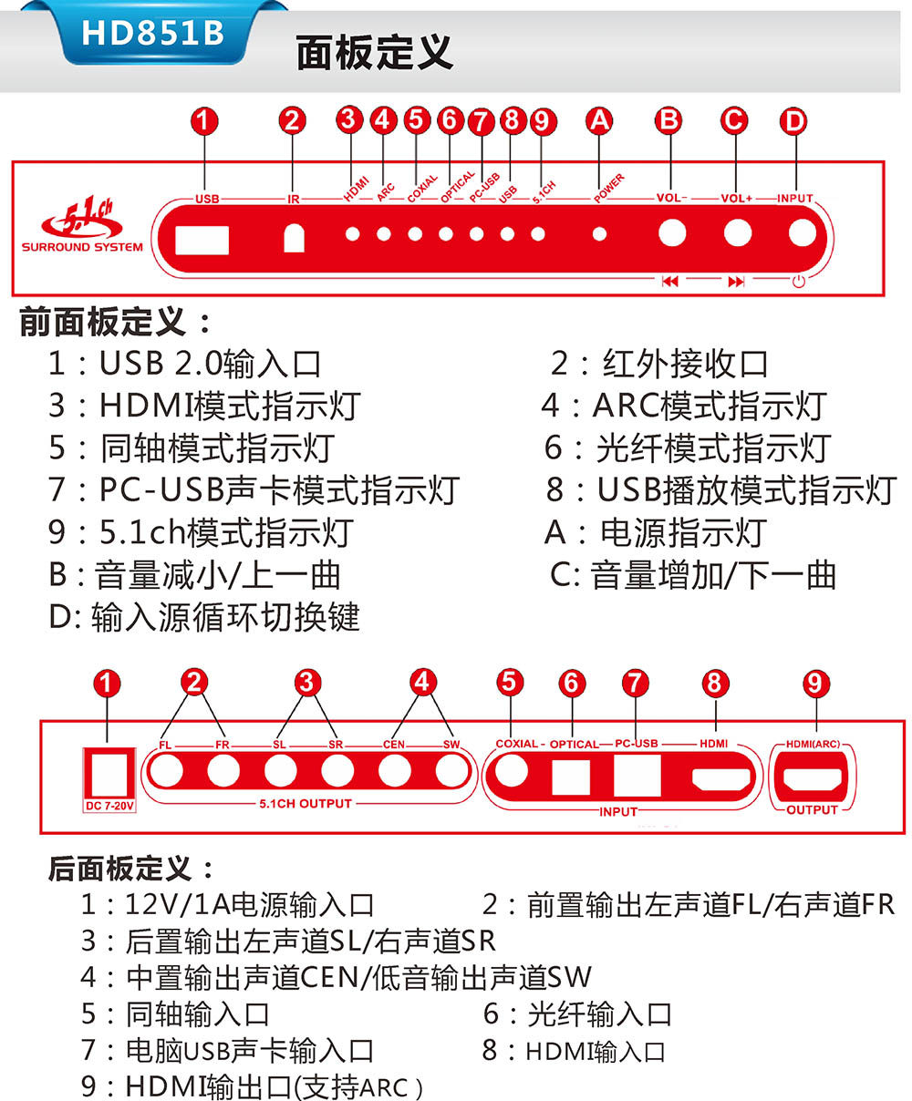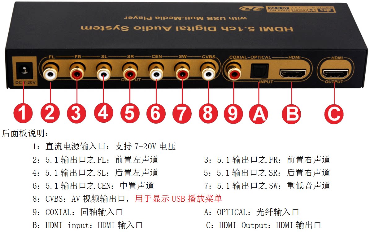 5.1 Dolby DTS Декодер Arc Theatre отделен от HDMI Audio Optical Fiber Coaxial Axis USB Sound Card U Disk Music
