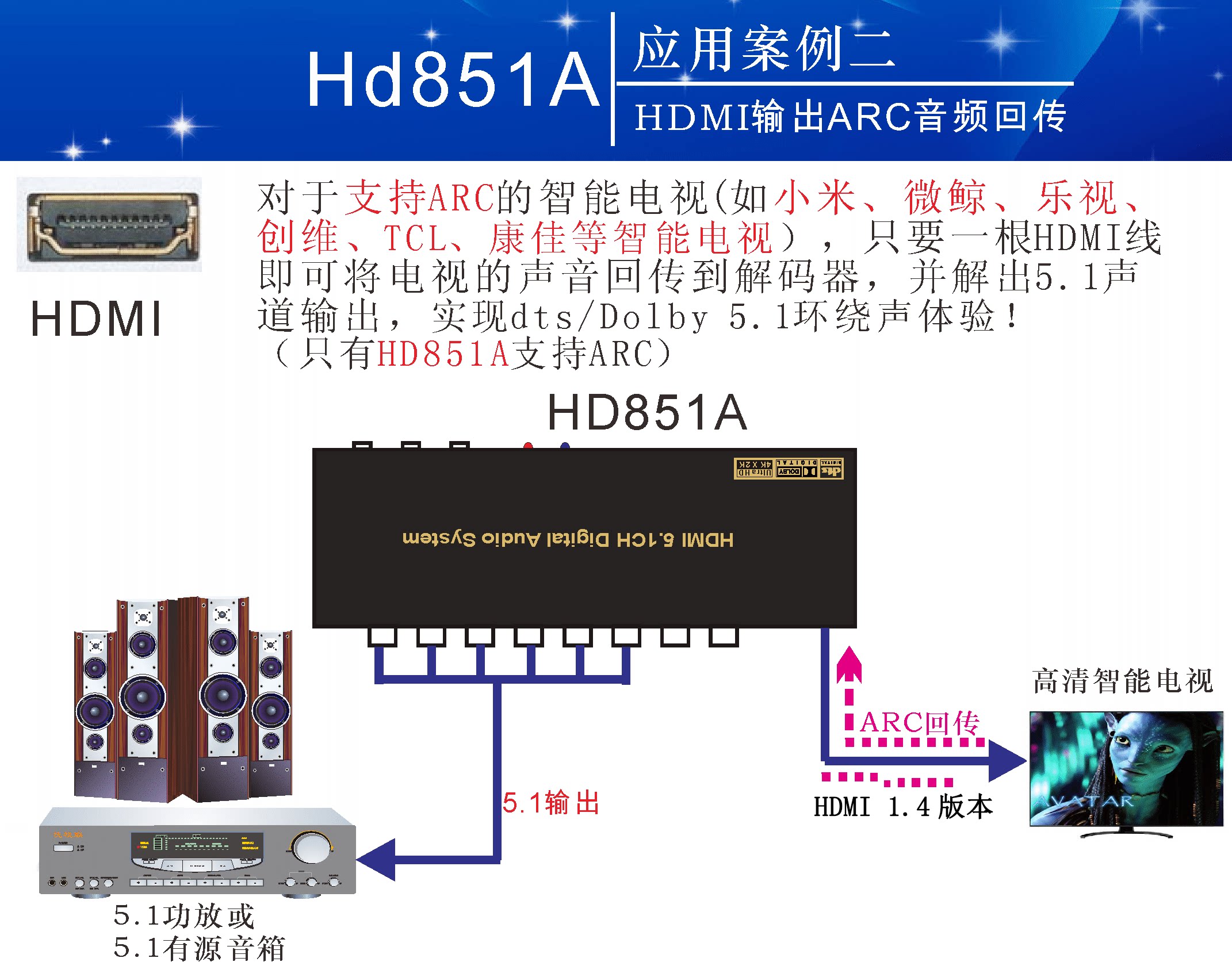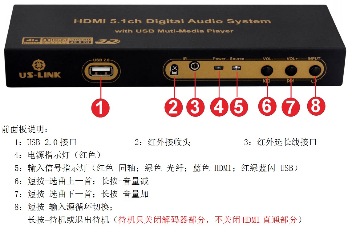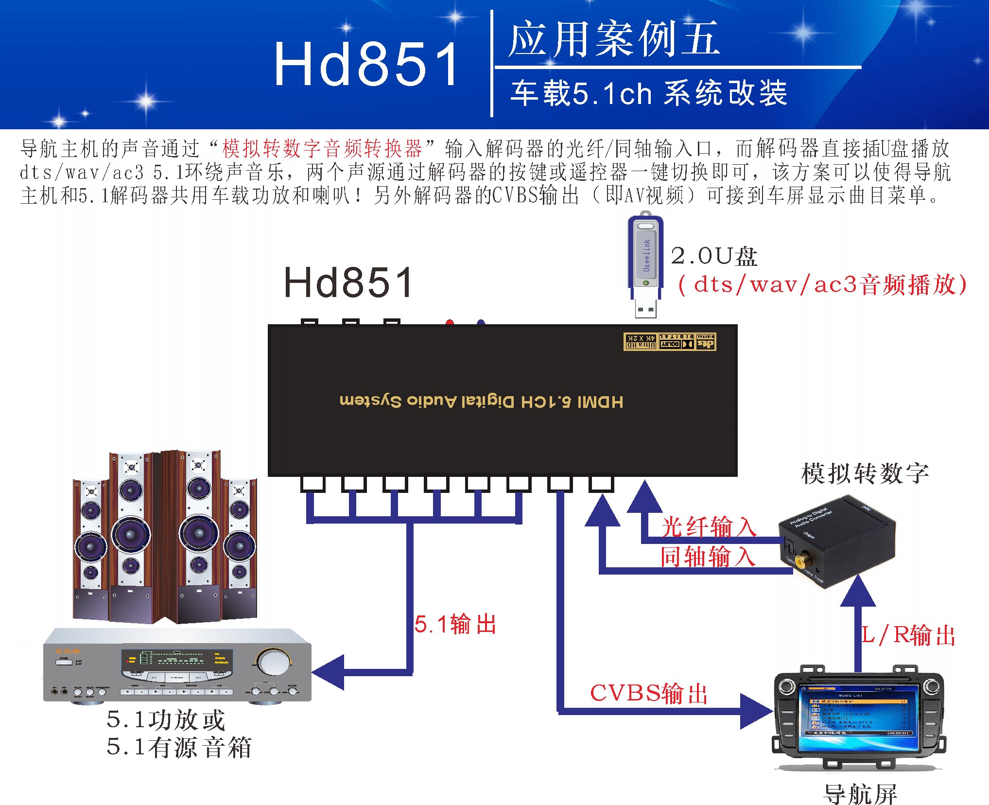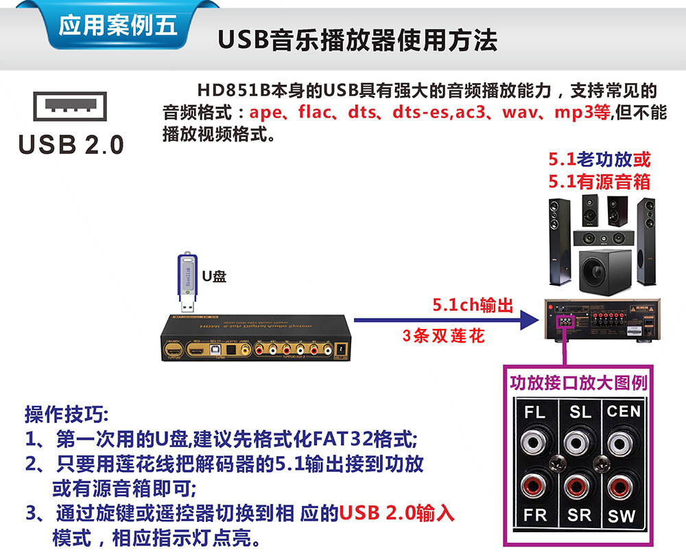5.1 Dolby DTS Декодер Arc Theatre отделен от HDMI Audio Optical Fiber Coaxial Axis USB Sound Card U Disk Music