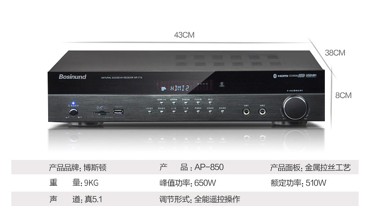 Bolston AP-850 HDMI Gongchen Display Digital DTS Декодирует волокно-волоконное журнал 5.1 Fever Ptensear машина