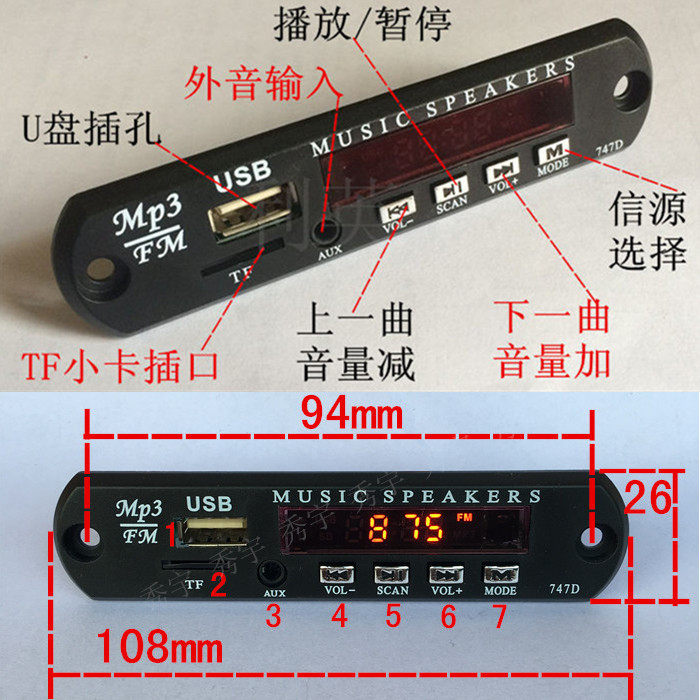 M13 MP3 Decoding Board 12V Audio Decoder Display/Radio/Aux U Disk/TF Card Motherboard