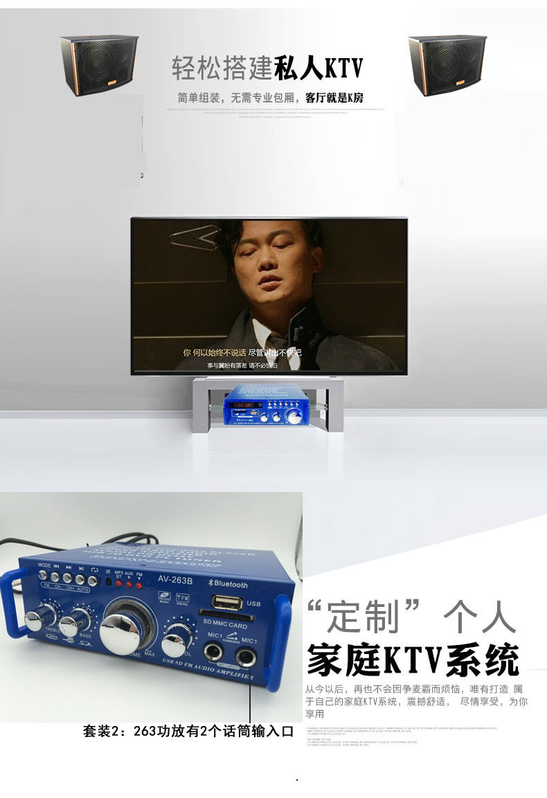 Усилитель, колонки, USB-флеш-накопитель, микрофон, высокая мощность, 220v, bluetooth