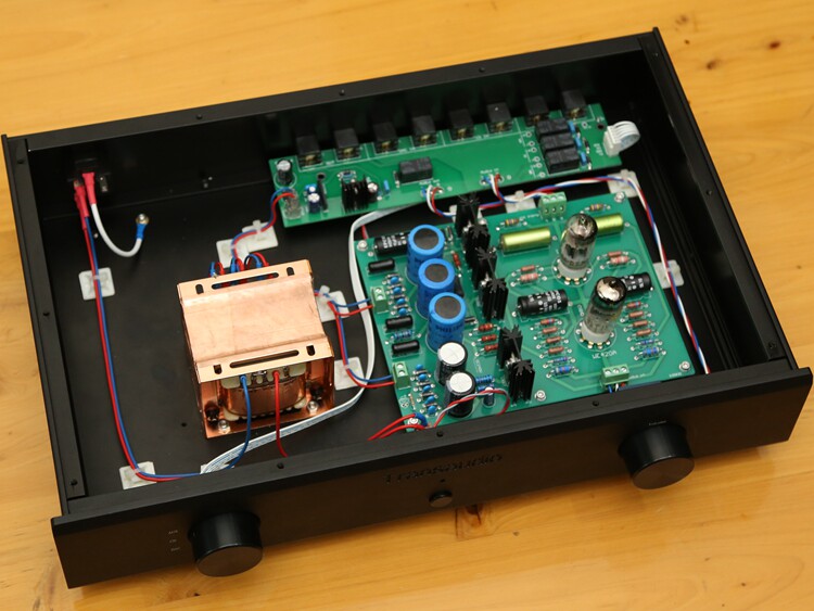 Ядовитая предварительная статья желчь, предназначенная для West Electric WE420A/5755. На первом уровне используется Western Electric WE420A/5755 для усиления в 10 раз, а второй уровень использует 12AU7 в качестве выходного канала (большой ток и низкий выходной сопротивление);