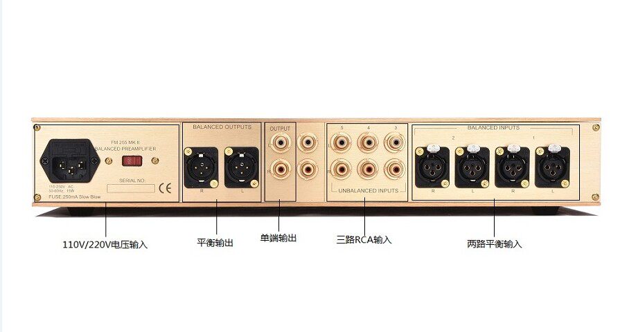 Существует 2 набора баланса xlr, 3 группы ввода одноэнд -энд RCA, один набор ввода записи RCA RCA, набор выводов записи Single -END RCA и группа выводов баланса (укажите, что предыдущий уровень делает Не иметь единой выходной функции RCA, сбалансированного блока баланса, стандартного европейского стандарта).