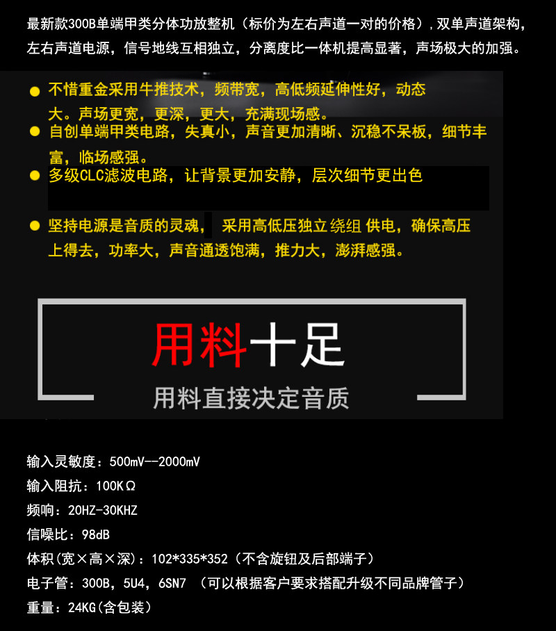 Qingfeng A80 300b Двойной одноканальный левый и правый канал разделить чисто -броню желчья машина электронная мощность трубы усилитель