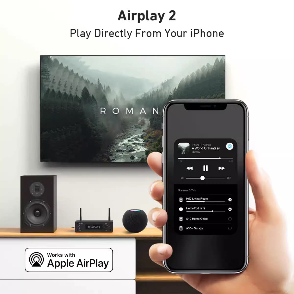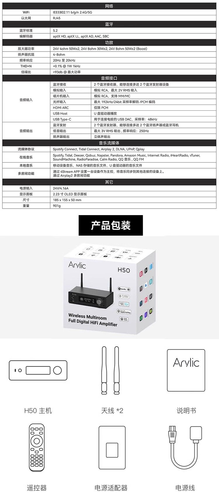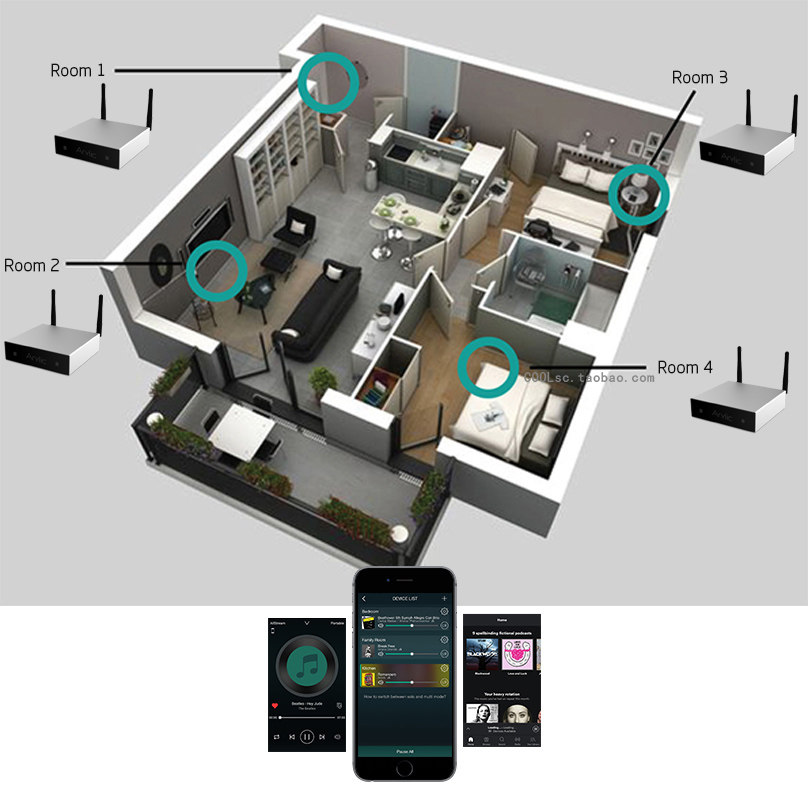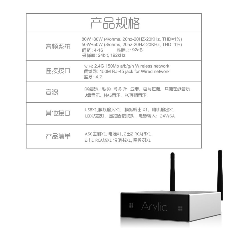Wi -Fi Bluetooth Arlyic A50 Dual -Mold Multi -Room без измененного музыкального Airplay, DLNA, DLNA, DLNA