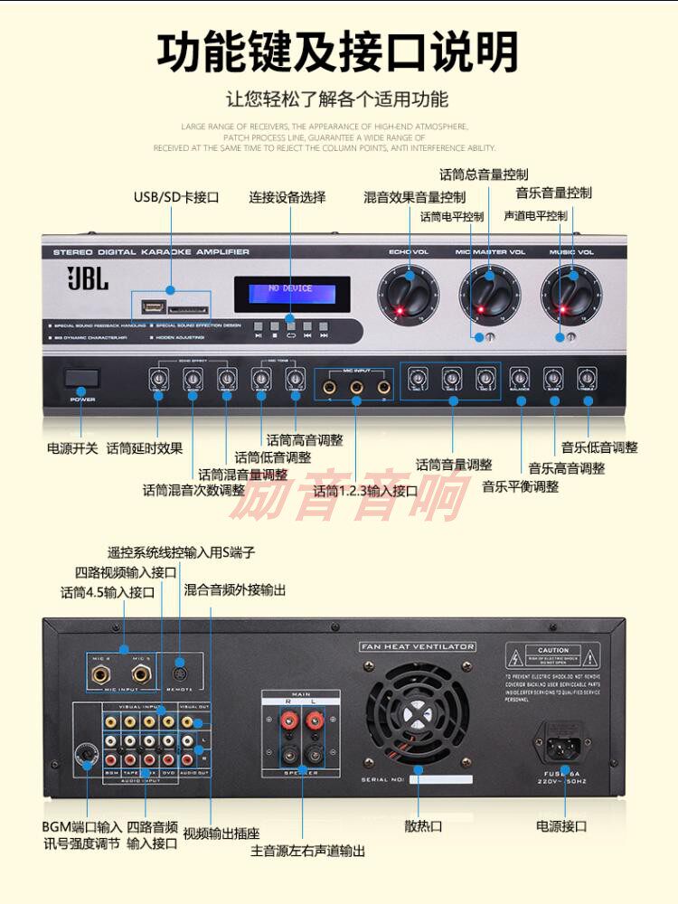 JBL Hove Card Bag Sag усилитель Power Family Family KTV Conference Caraoke Bluetooth Hifi High -сила -в одном
