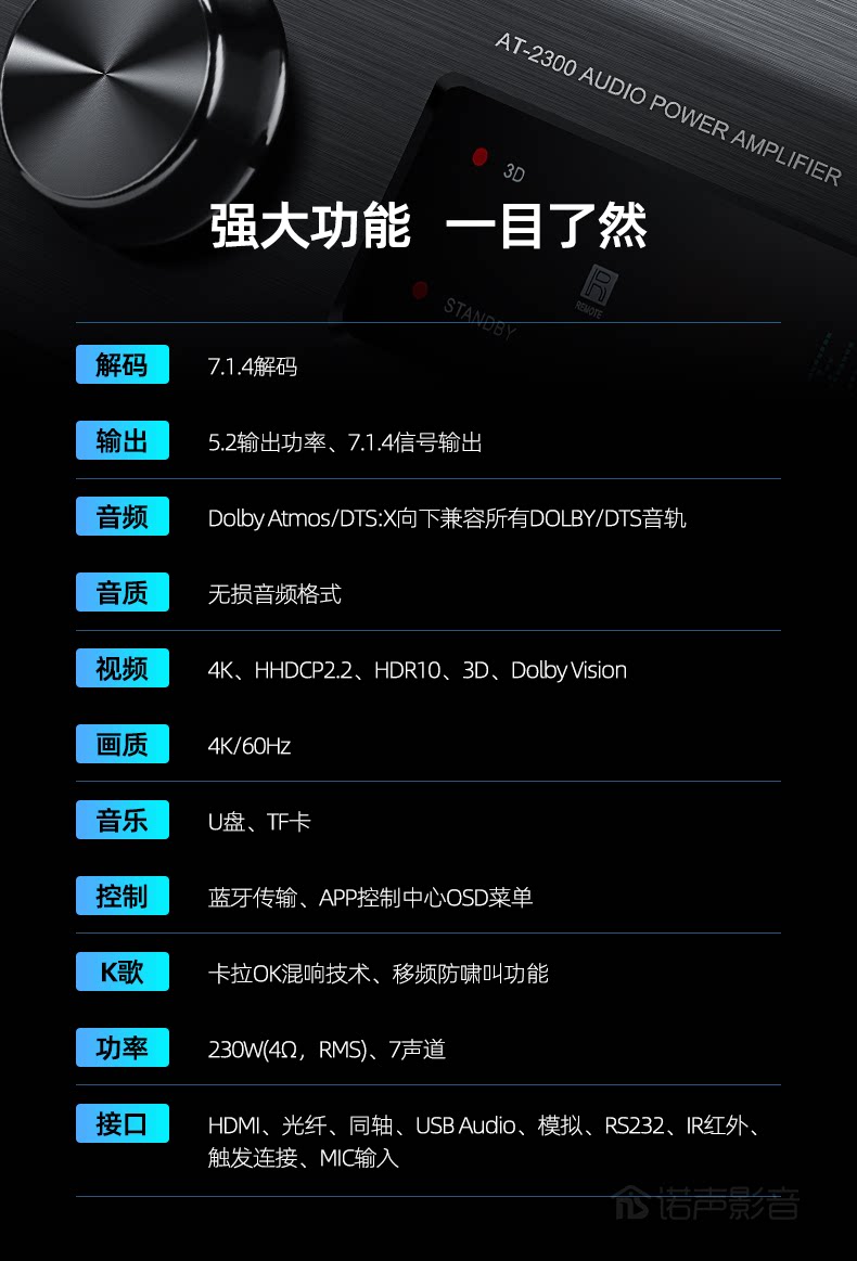 Winner/天逸 AT-2300 Panorama Homeving Living Room Cinema 5.1.2 Movie Kinal Kmplifier