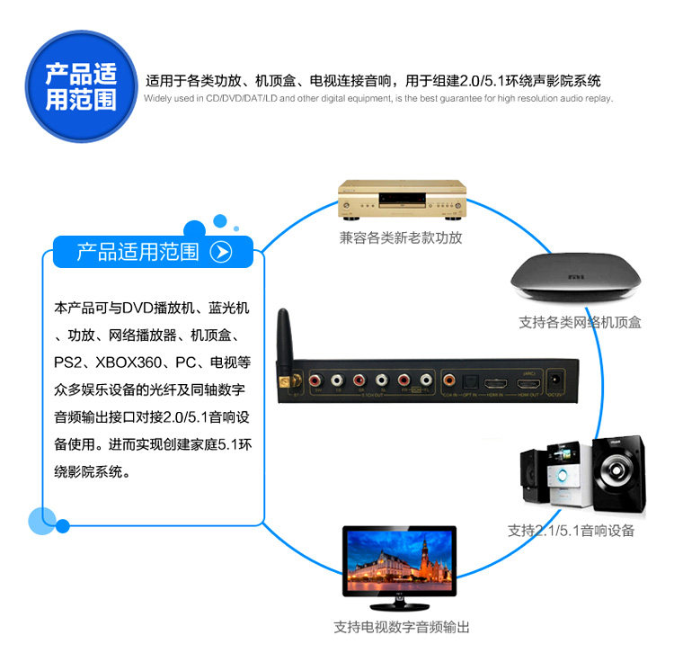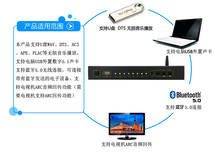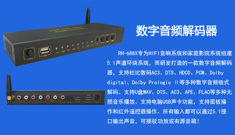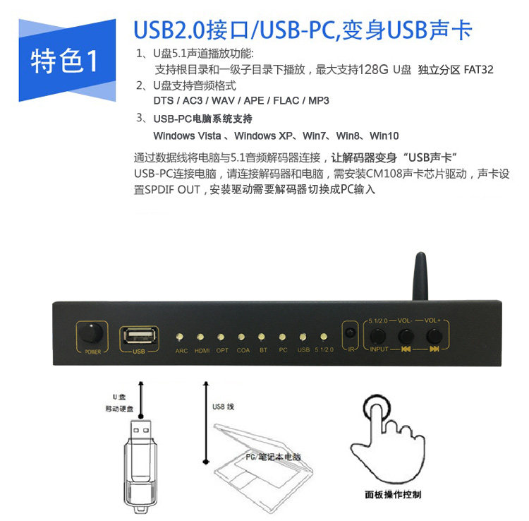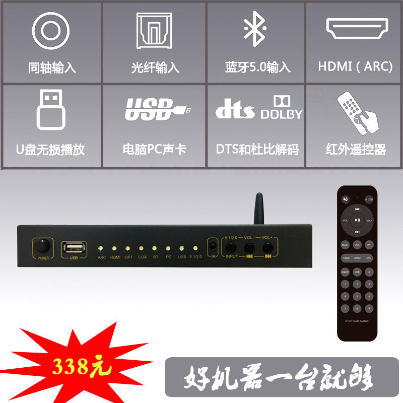 DTS Dolby 5.1 декодер волокон -фрибр коаксиальный HDMI Audio Digital USB -карта дуга Bluetooth U Диск музыка