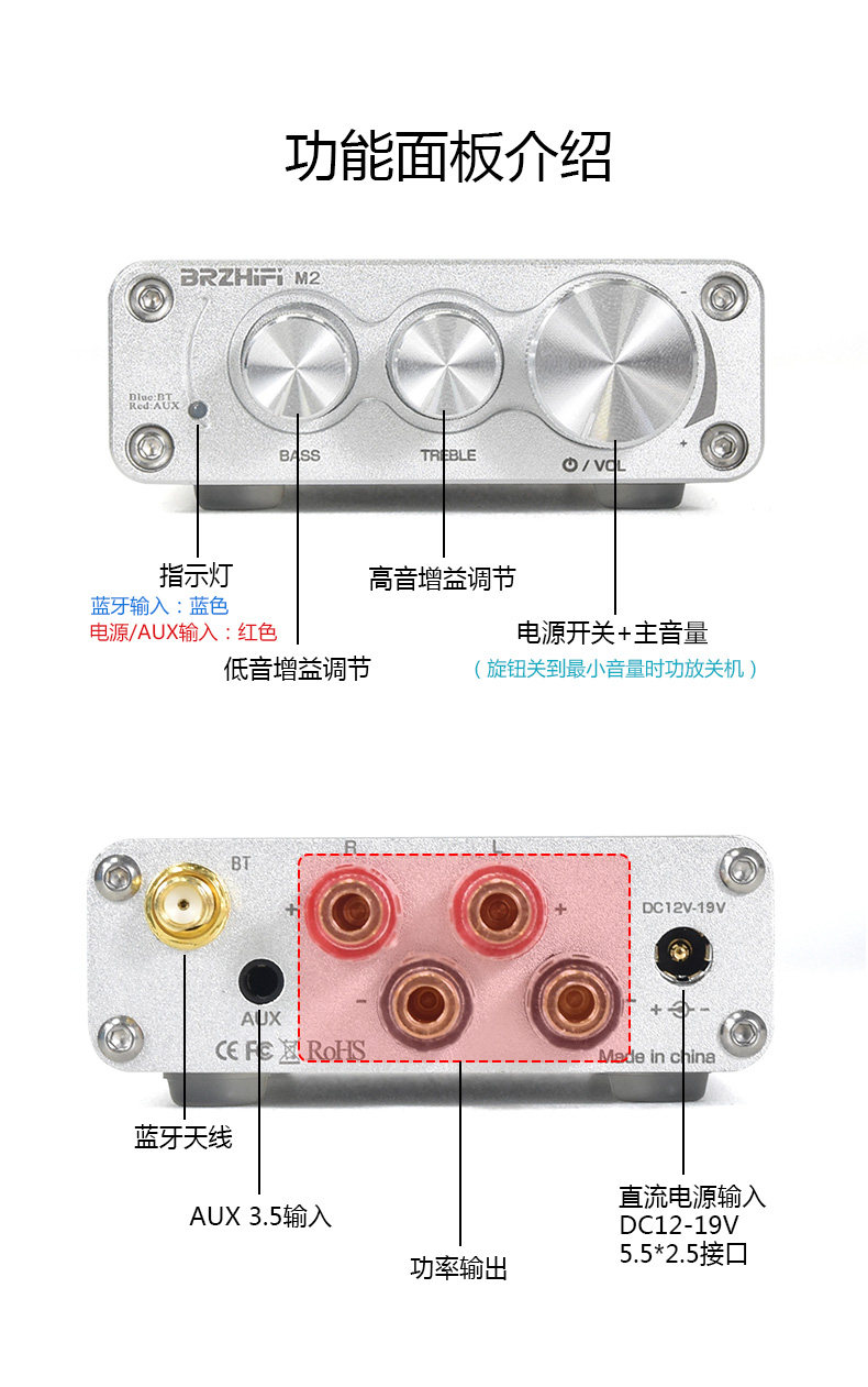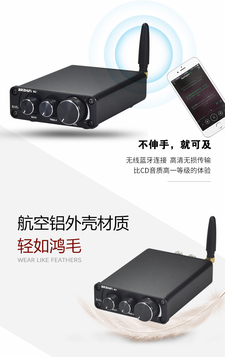 Brzhifi-M2 цифровой Bluetooth-усилитель All-алюминиевый алюминиевый динамик металлический текстура
