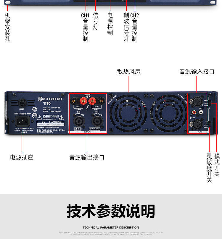 Профессиональная серия Crown Crown T Professional High -сильная выступление свадьба KTV Conference Home Pure задней мощности усилитель мощности