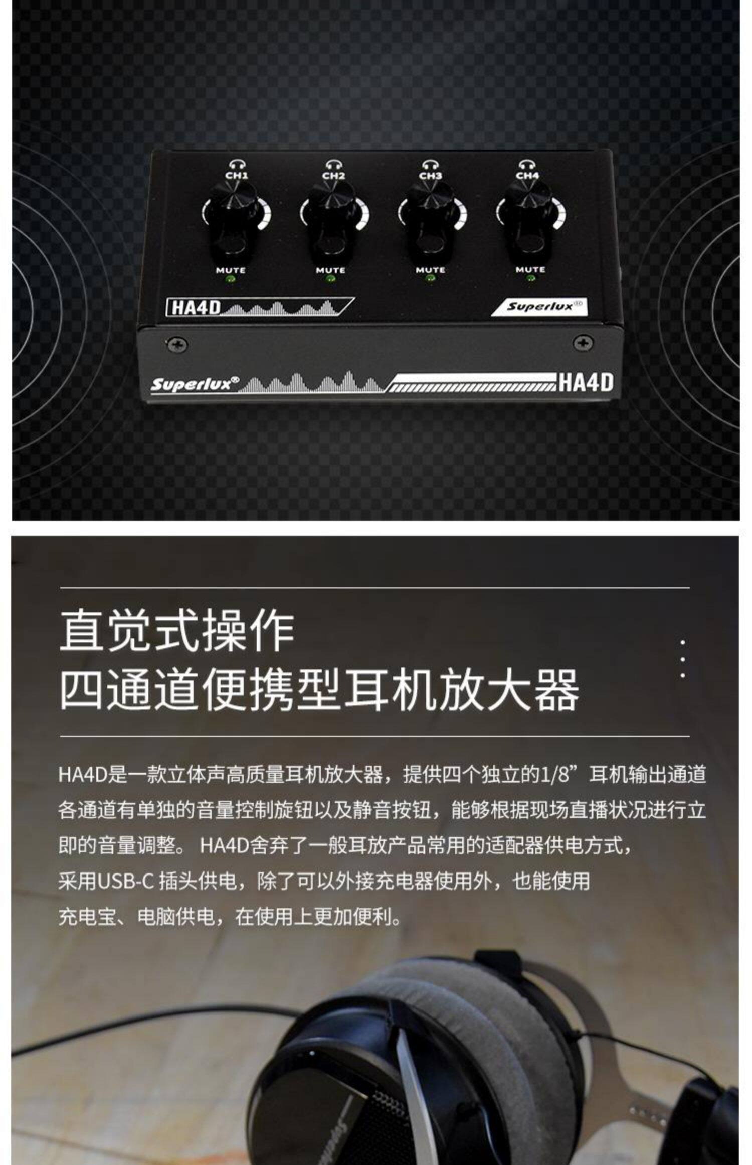 Superlux/舒伯乐 HA4D четырехканальный портативный усилитель для наушников USB-C Powered Вход