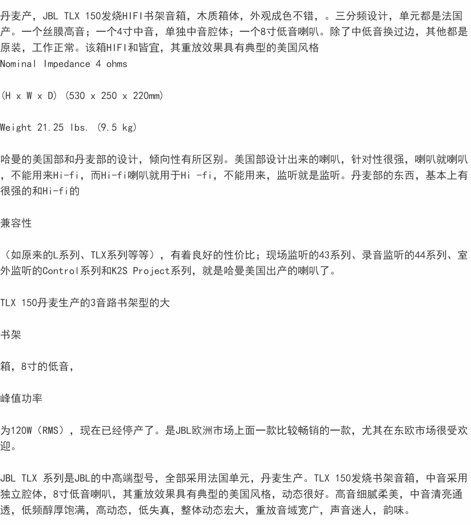 Второй оригинальный датский джБР TLX150 8 -INCH BASS BASS -СПОН