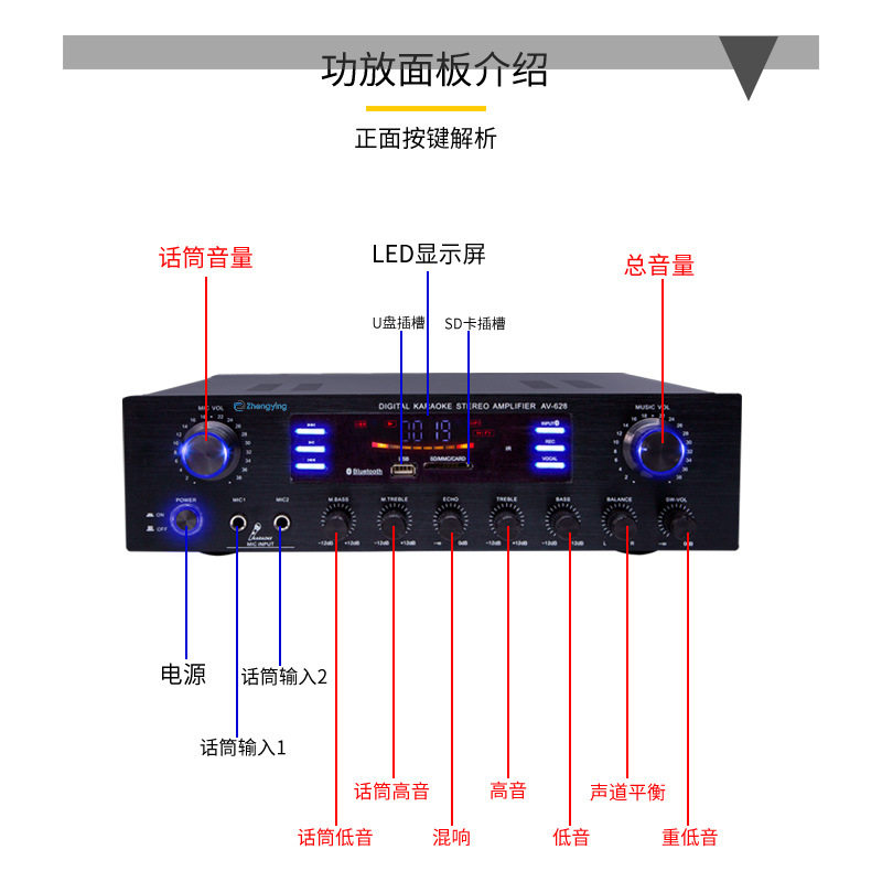 Усилитель мощности домохозяйства с высоким уровнем усилителя с высоким уровнем усилителя Bass Bluetooth Ktv Stage Audio усилитель Hifi качество звука