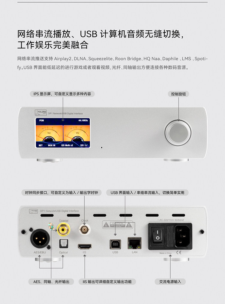 钰龙 Сетевой проигрыватель DAART DP1, цифровой интерфейс USB, универсальное потоковое мультимедиа, потоковая передача веб-трансляций