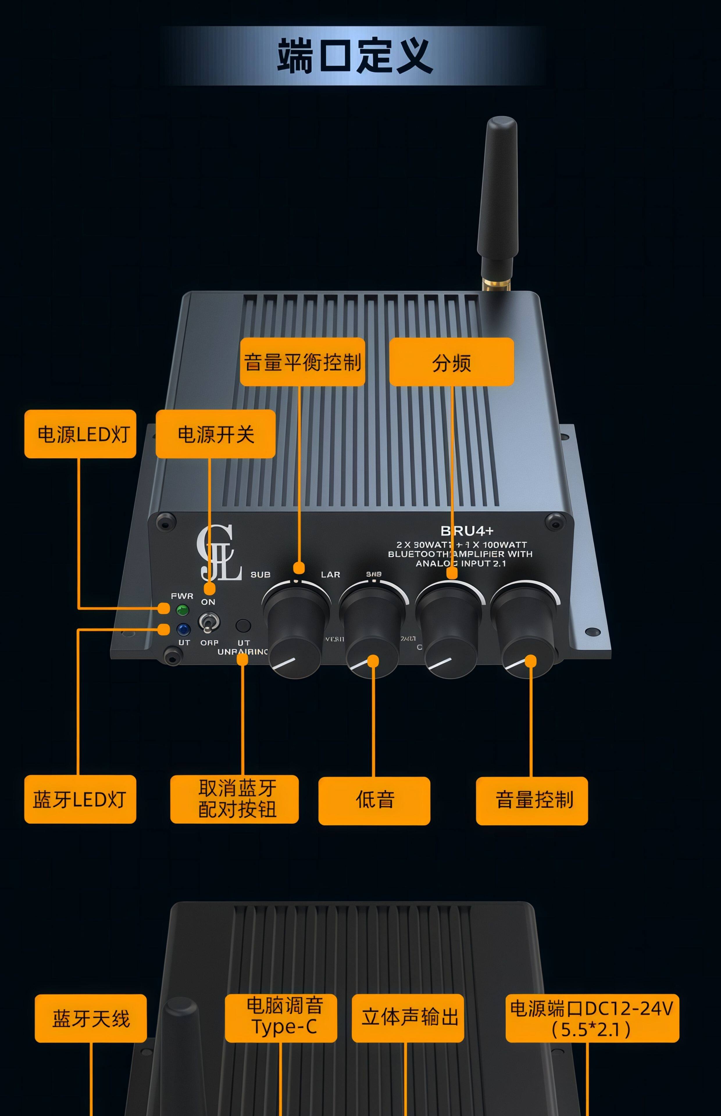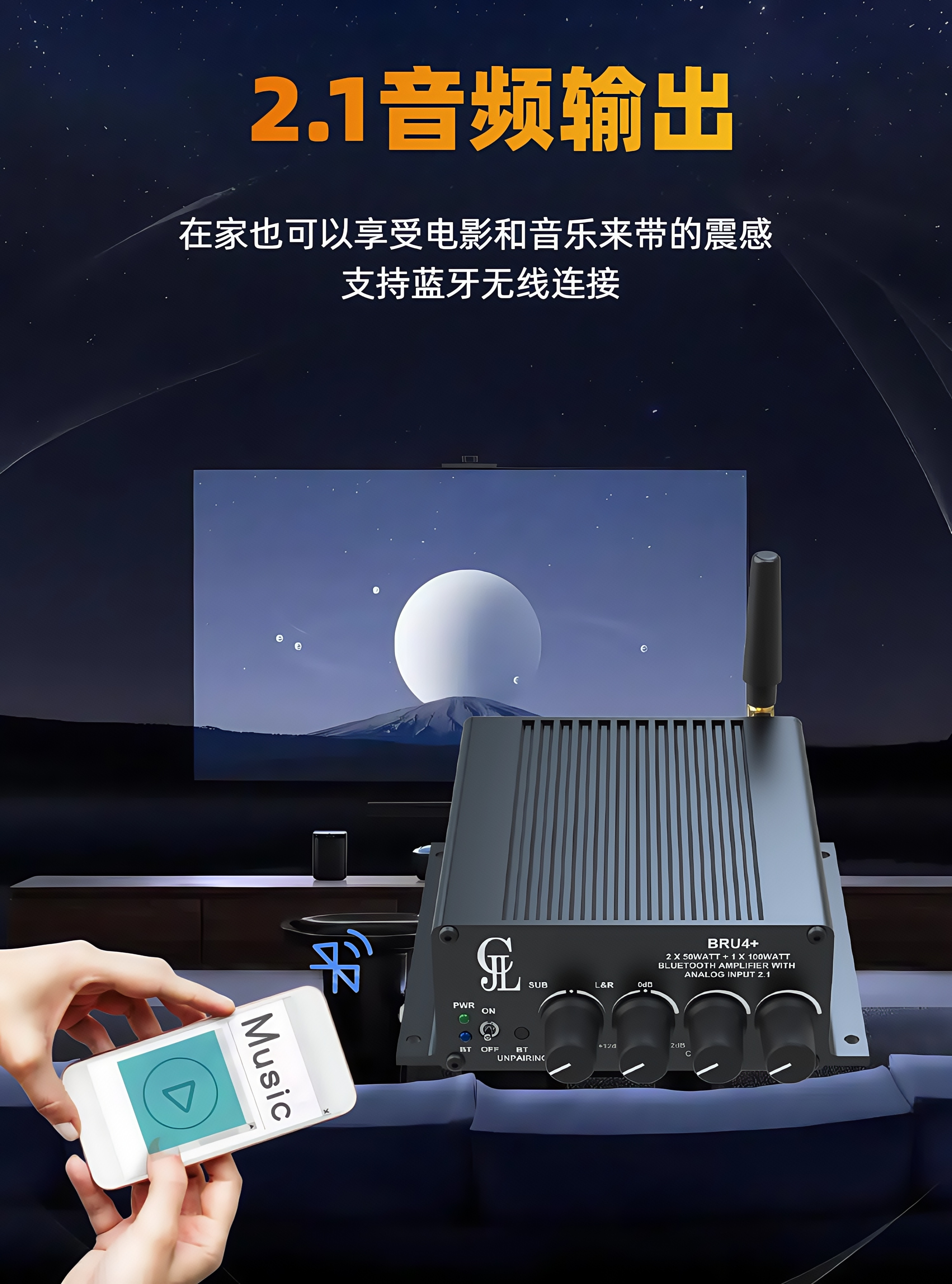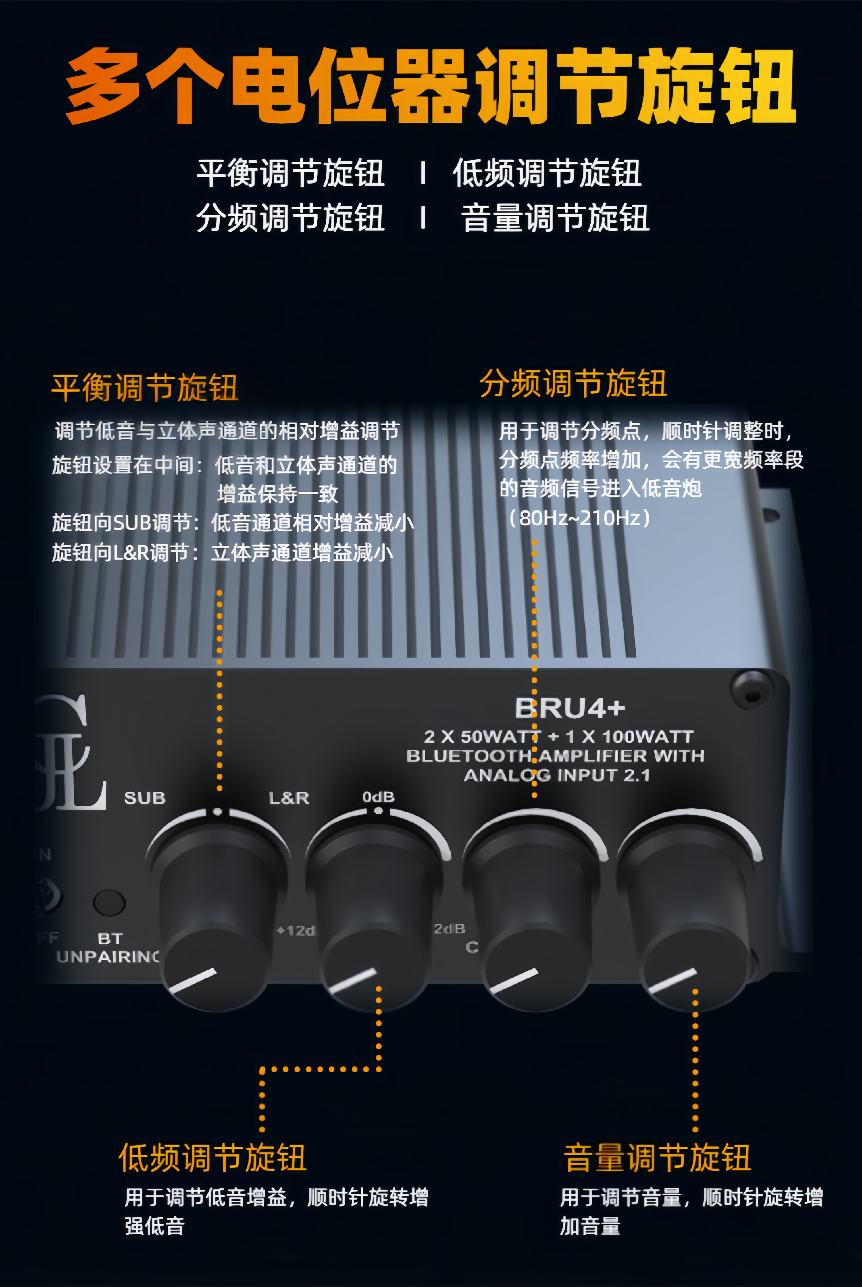 2x50 Вт + 100 Вт 2,1-канальный TPA3116 HIFI цифровой усилитель Bluetooth 5,3 настройка DSP BRU4 +