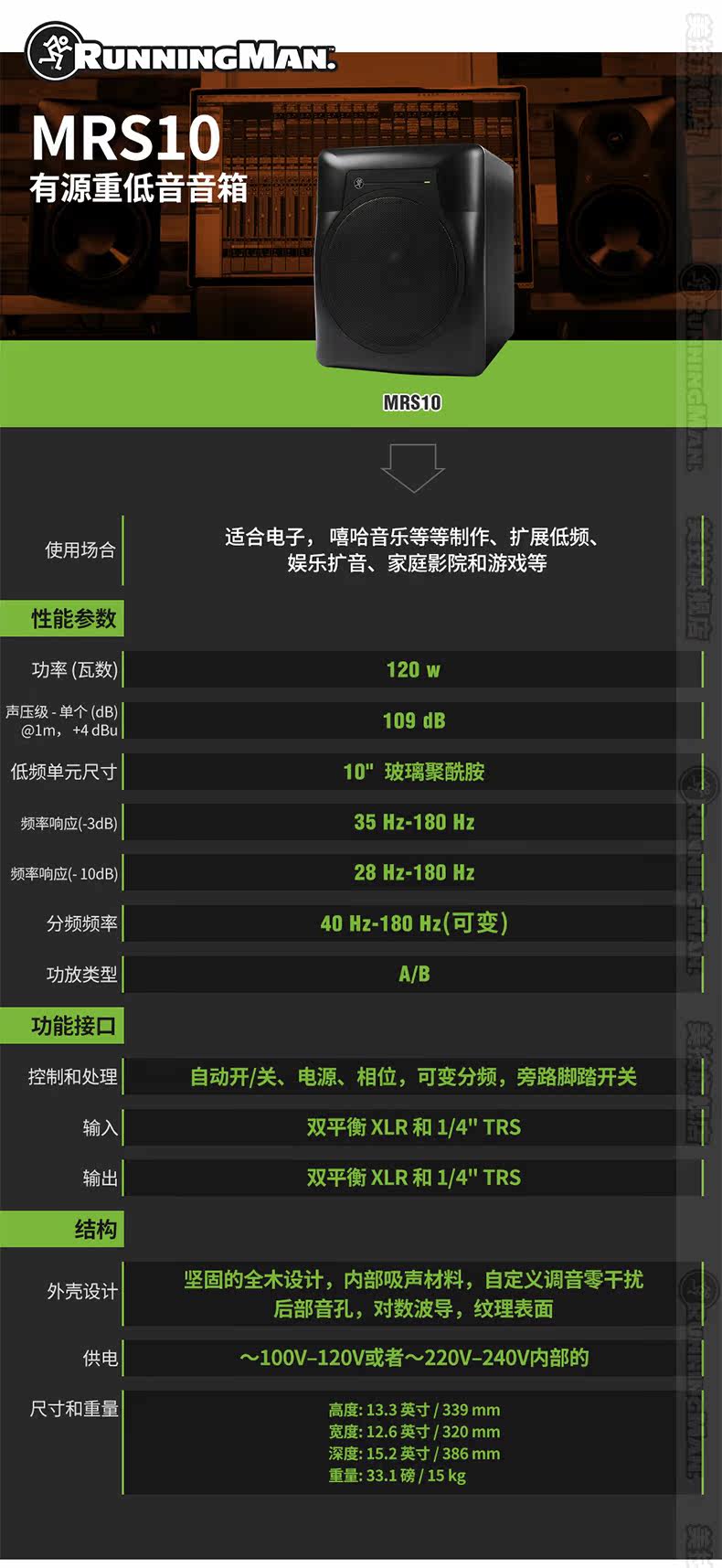 Rungman Mei Tech Mrs10 Bassage Room Comment Heavy Bass с активным динамиком с низкой частотой.