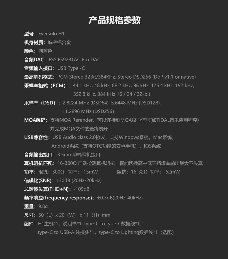 Eversolo H1 Portable Portable Hi-Res Apple Android Computer Computer Driver