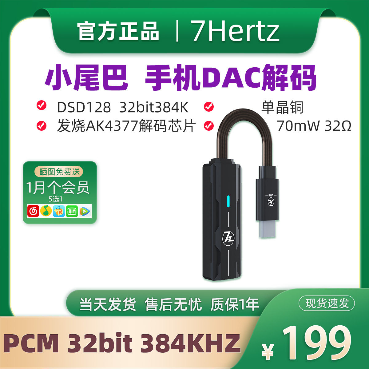 七赫兹 7 Гц 71 Портативная лихорадка Hifi, декодирующая Zebar Line Type-C до 3.5 Мобильный телефон. Небольшой хвост