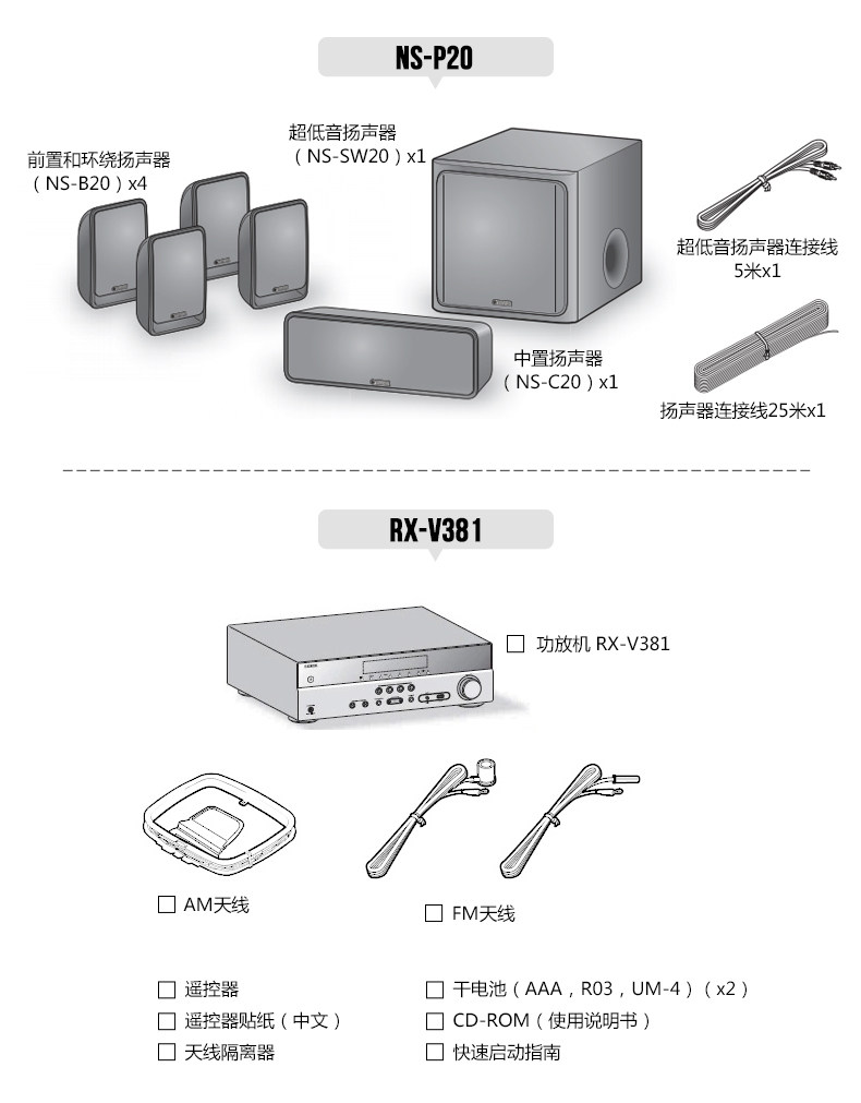 Предварительная продажа Yamaha/Yamaha NS-P20/RX-V381 SET Home Theatre 5.1 Audio Dinger