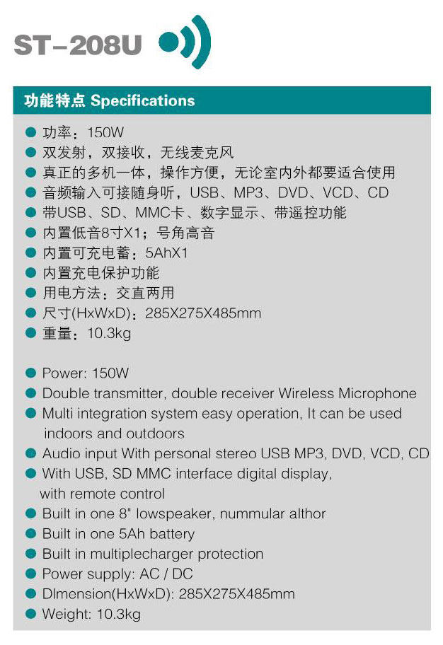 Прямые продажи завода: Sommeter ST-208U Вывод на открытом воздухе мобильная плагина для мобильных мобильных карт пения 150 Вт.