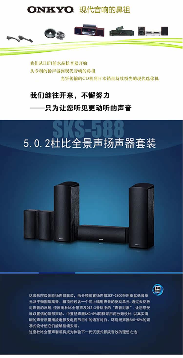 Onkyo/安桥 SKS-588 5.0 Channel Dolby Panorama Speaker Home Theatre Set Speaker