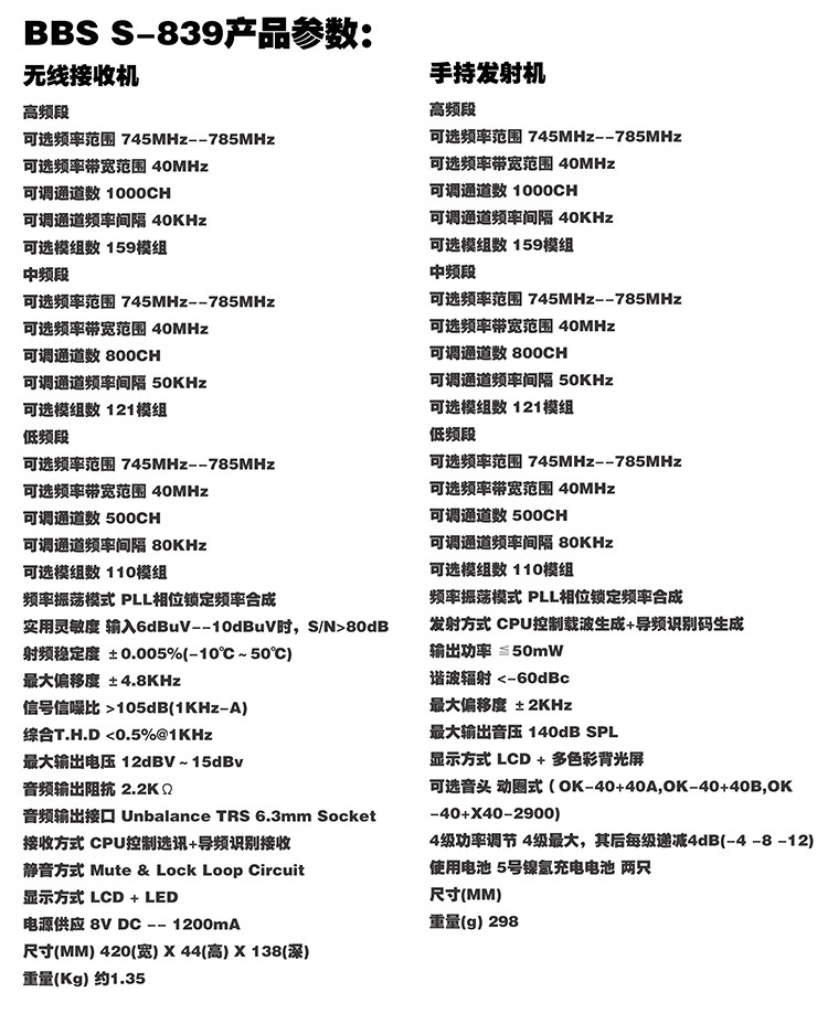 5 ::BBS-S-839 серия Starlight Series KTV PerformanceБеспроводной микрофон перетаскивается на секунду, поддержкаУдерживание на 100 метров расстояние, инфракрасная частота, 200 частотная точка KTV.Нет частоты (1 набор)
