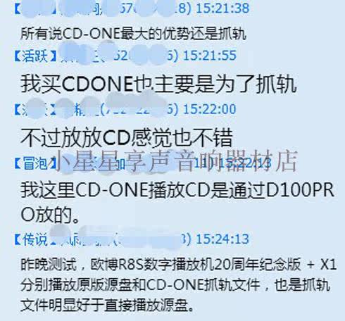 [CD-ONE 可精准流抓轨和CD直接播放,搭配享声任何台式播放器均可使用。但是,搭配D100pro豪华,播放和抓轨的效果更佳。以下用户真实反馈可以参考:]