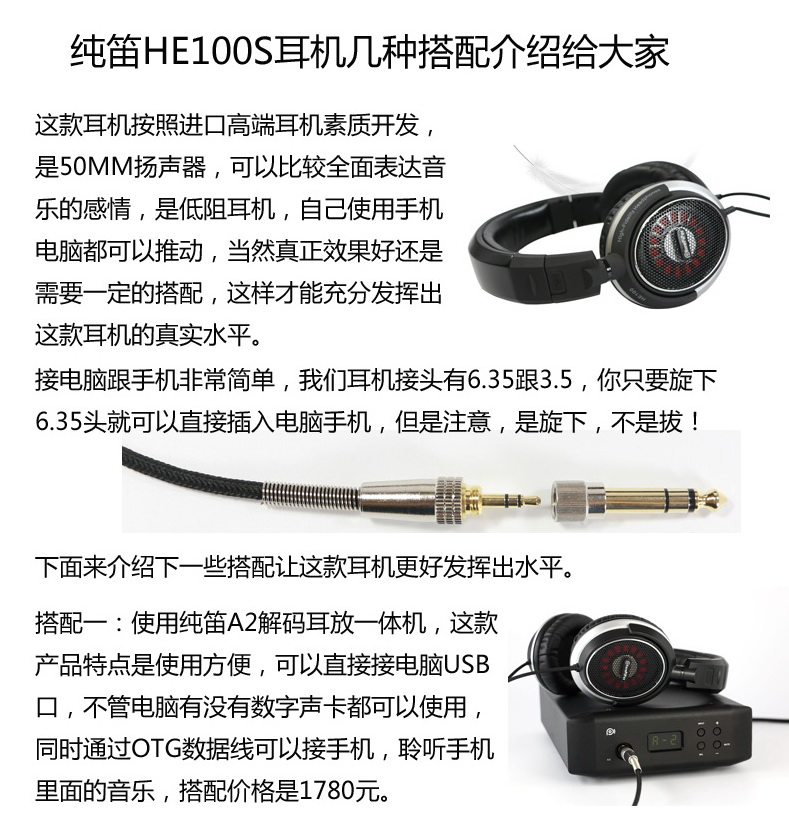 纯笛 Hifi Hearset He100S Обновляемая версия+A2 Decoder Otpsus DAC может подключиться к компьютерному мобильному телефону, iPad