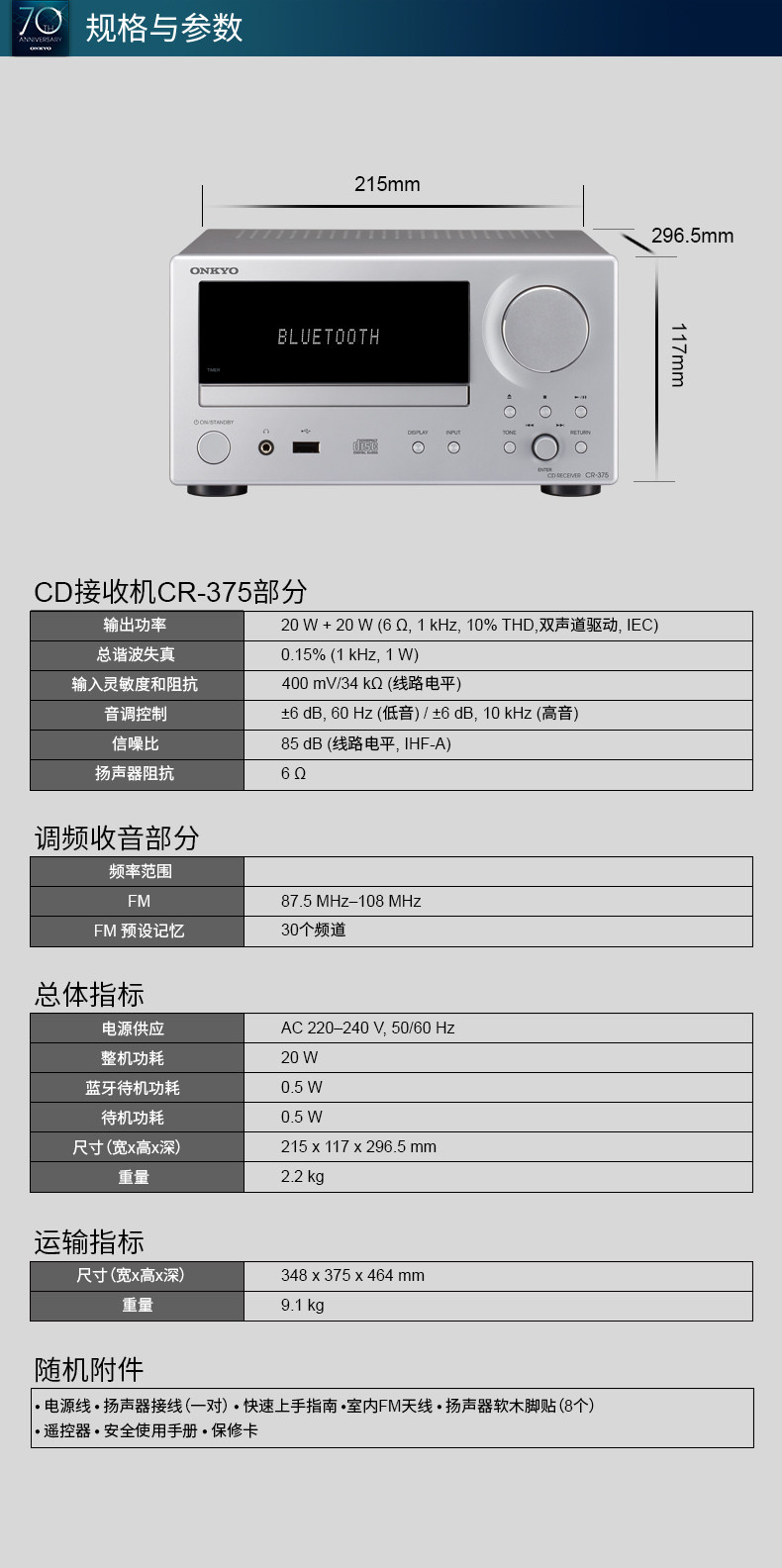 Onkyo/安桥 CS-375 Mini Audio Комбинация Hifi Audio Bluetooth Комбинированная аудио динамика CD