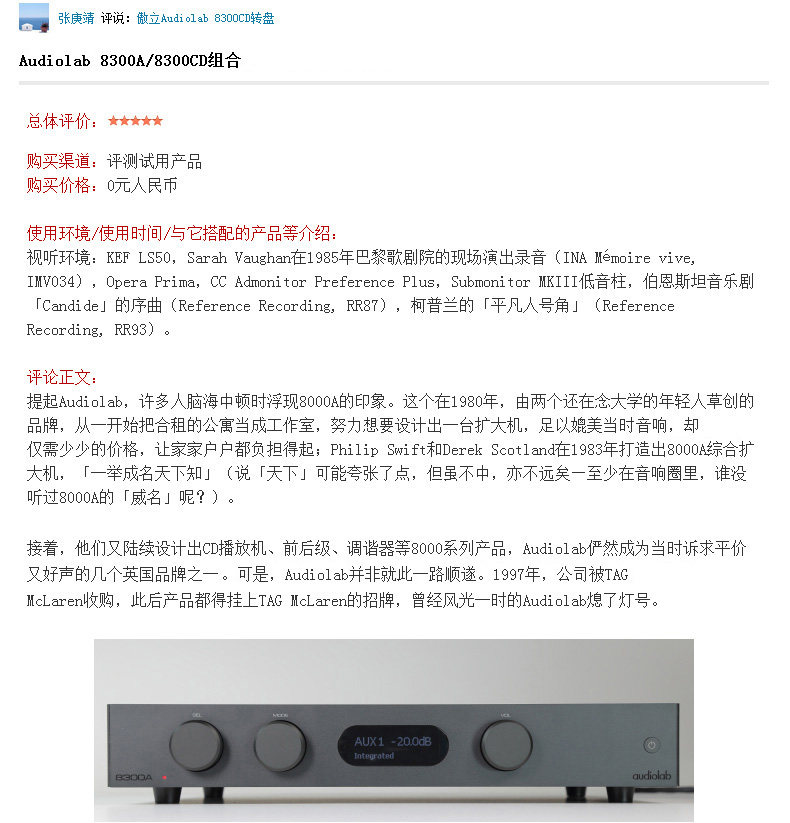 Audiolab/ Aoly 8300CDQ+8300A+Le Fuhao 85 -й годовщины