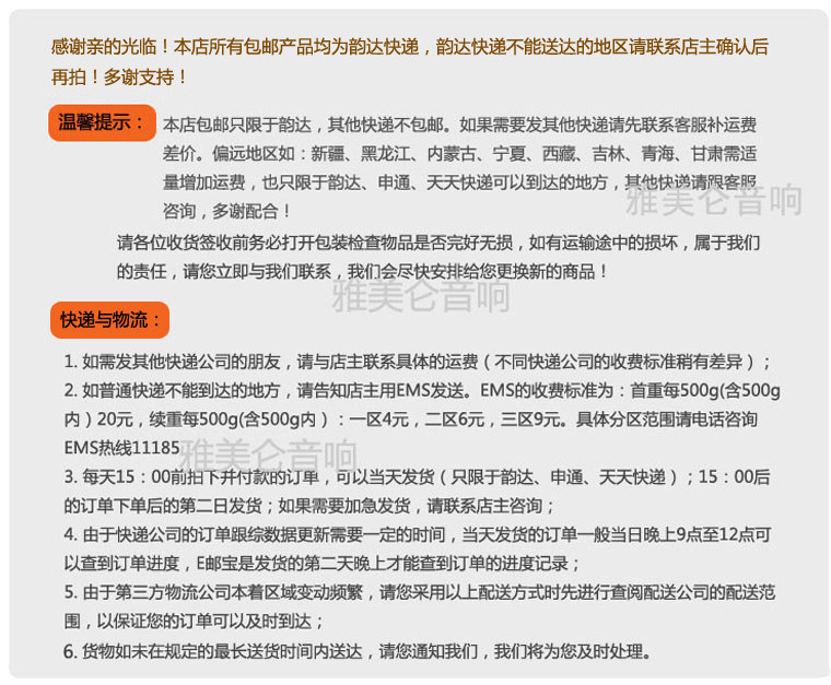 Специальное напоминание: Внутренняя Монголия, Тибет, Синьцзян, Нинсия, Гансу, Ляонинг, Цинхай, Хейлонгцзян, ДжилинНе поддерживайте экспресс -доставку!