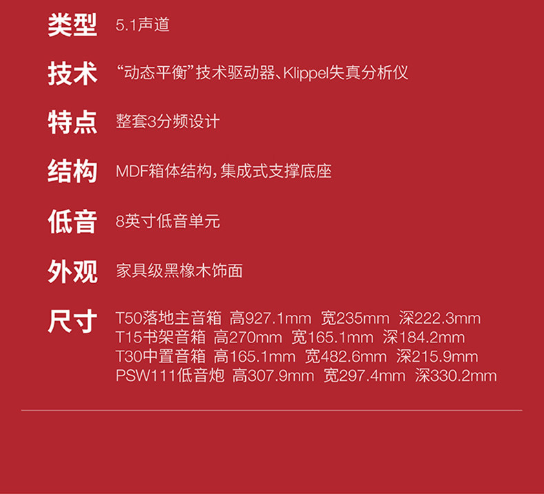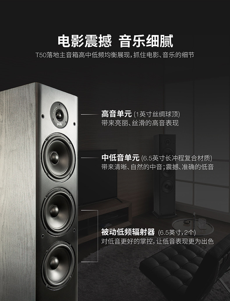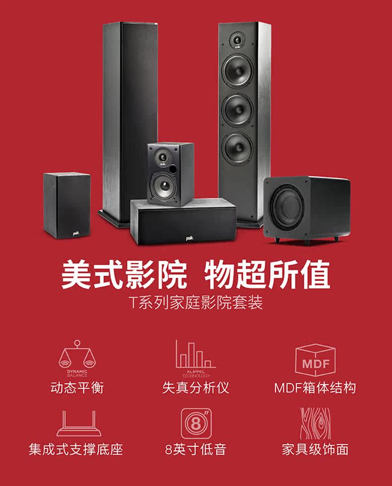 Polkaudio/普乐之声 T50 Series 5.1 Home Theatre Main Box Central Living Room TV Discoerm