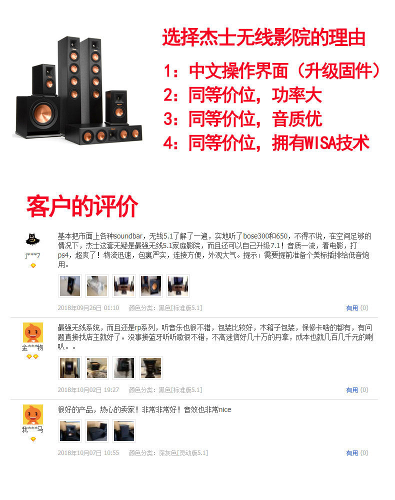 American Klipsch/Jezing Wireless Home Cinema 5.1 Set Wisa Technology Bluetooth -динамик Китайский