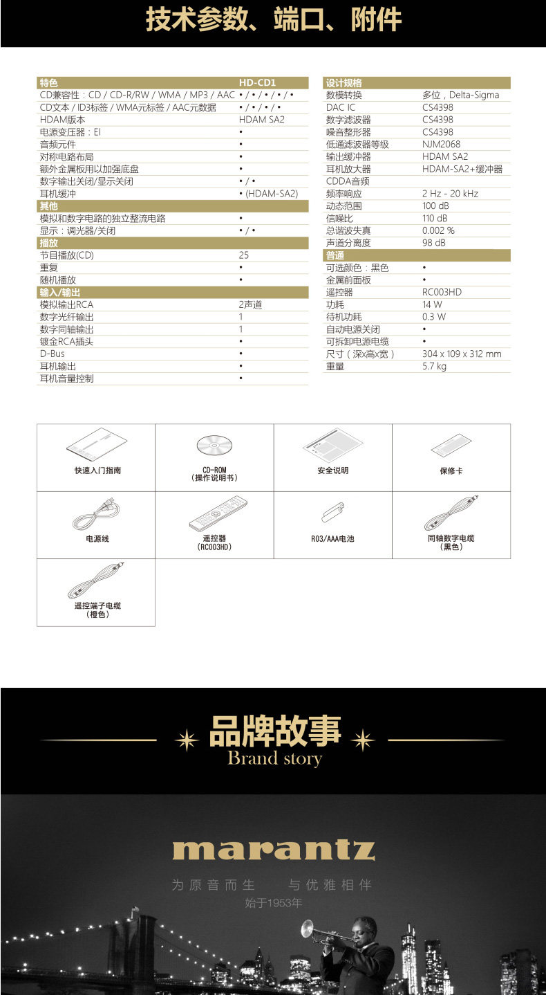 Marantz/马兰士 HD-CD1+HD-AMP1 Hifi Audio Set Retro CD-порт
