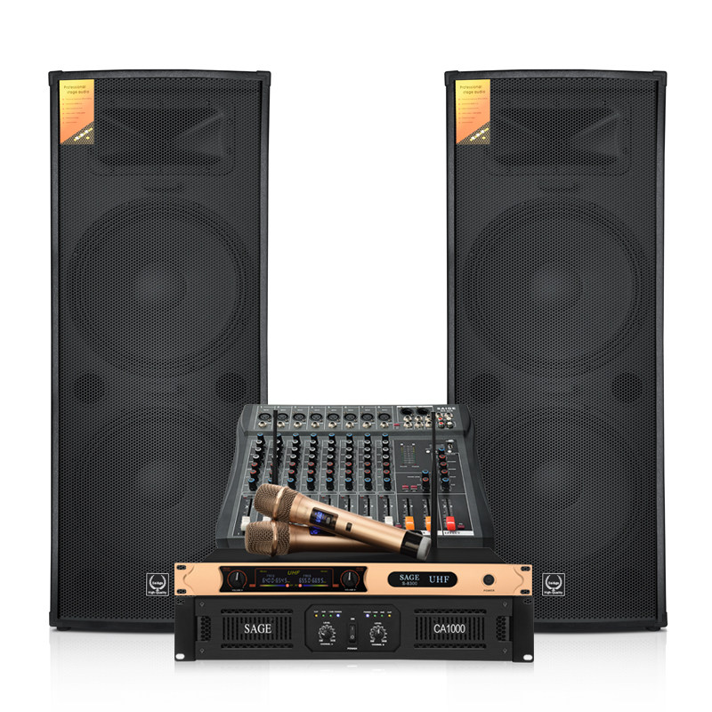 Профессиональная сценическая аудио двойная 15 -дюймовая выступление на открытом воздухе Hifi Conference Wedding High Power Power Power KTV набор динамиков