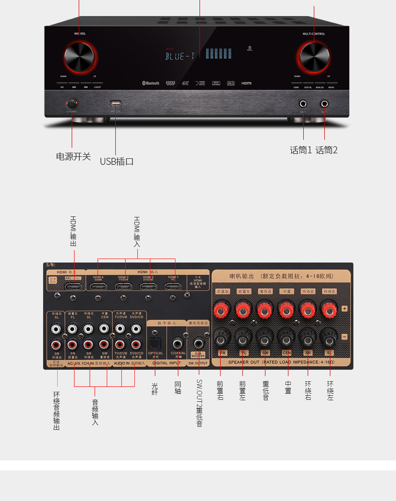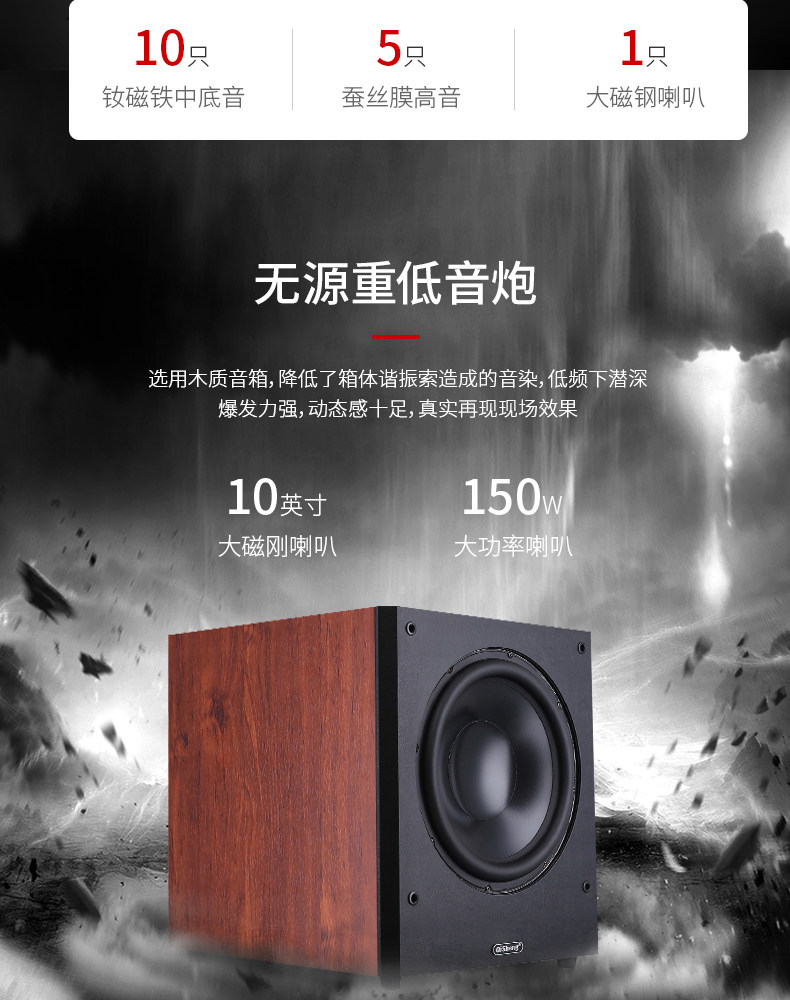 Qi Sheng HQ35 Деревянный дом кинотеатр Audio Set Living Room 5.1 Комбинированный динамик дома тяжелый бас -звук звук
