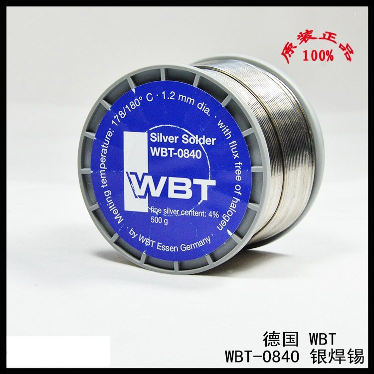 Немецкая оригинальная паяльная паяла WBT 0840 500 граммов с серебром с диаметром 4% диаметром 1,2 мм