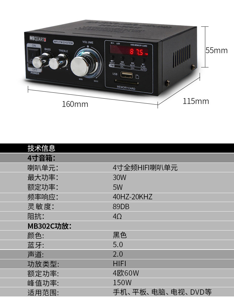 MBQUART Germany Germany MB302C Беспроводная лихорадка Bluetooth Comminemplier Комбинированный звуковой набор динамиков на рабочем столе