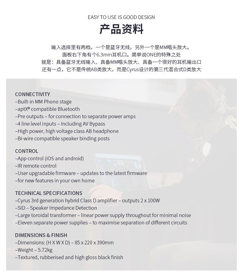 SAILEX ONE MULTI -ФУНКЦИЯ HIFI Параметры усилителя: